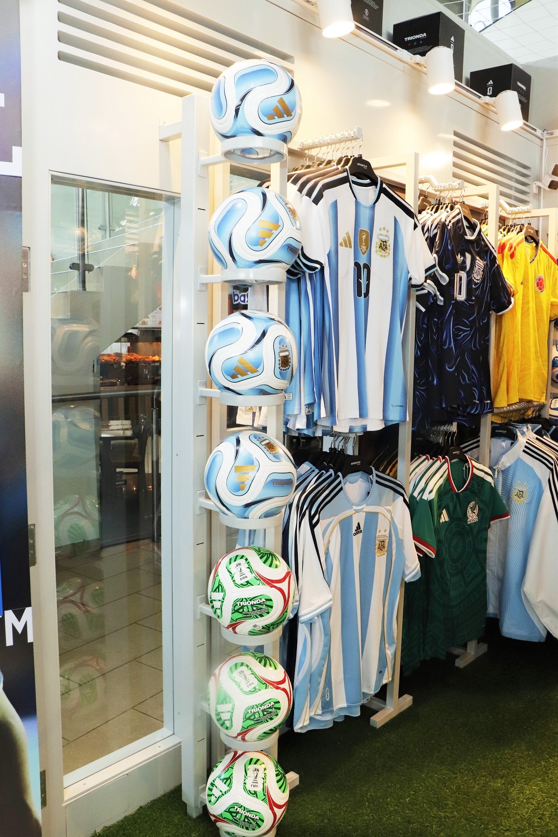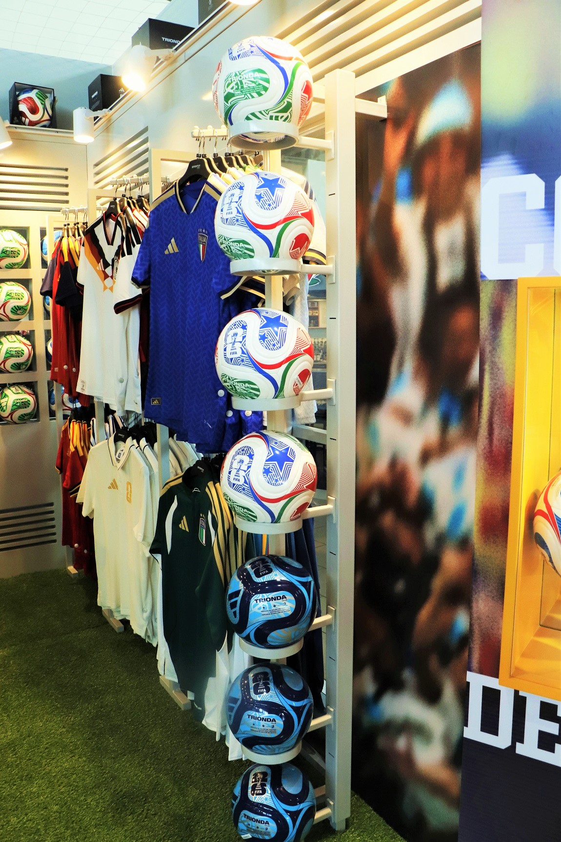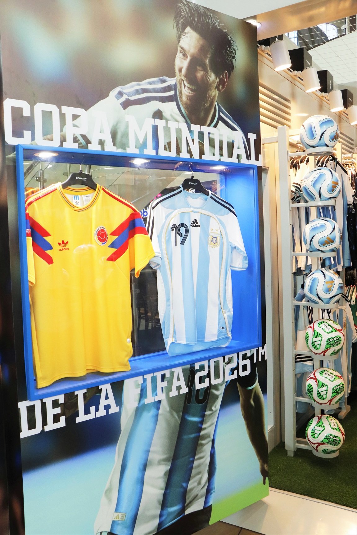 Entre los principales atractivos, los visitantes podrán encontrar camisas oficiales de local y visita de selecciones como Argentina, México, Colombia, Alemania, España, Italia y Japón; además del balón oficial Trionda y una amplia variedad de artículos Adidas diseñados especialmente para esta temporada mundialista.