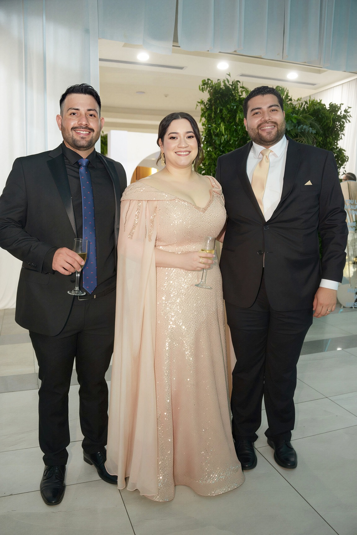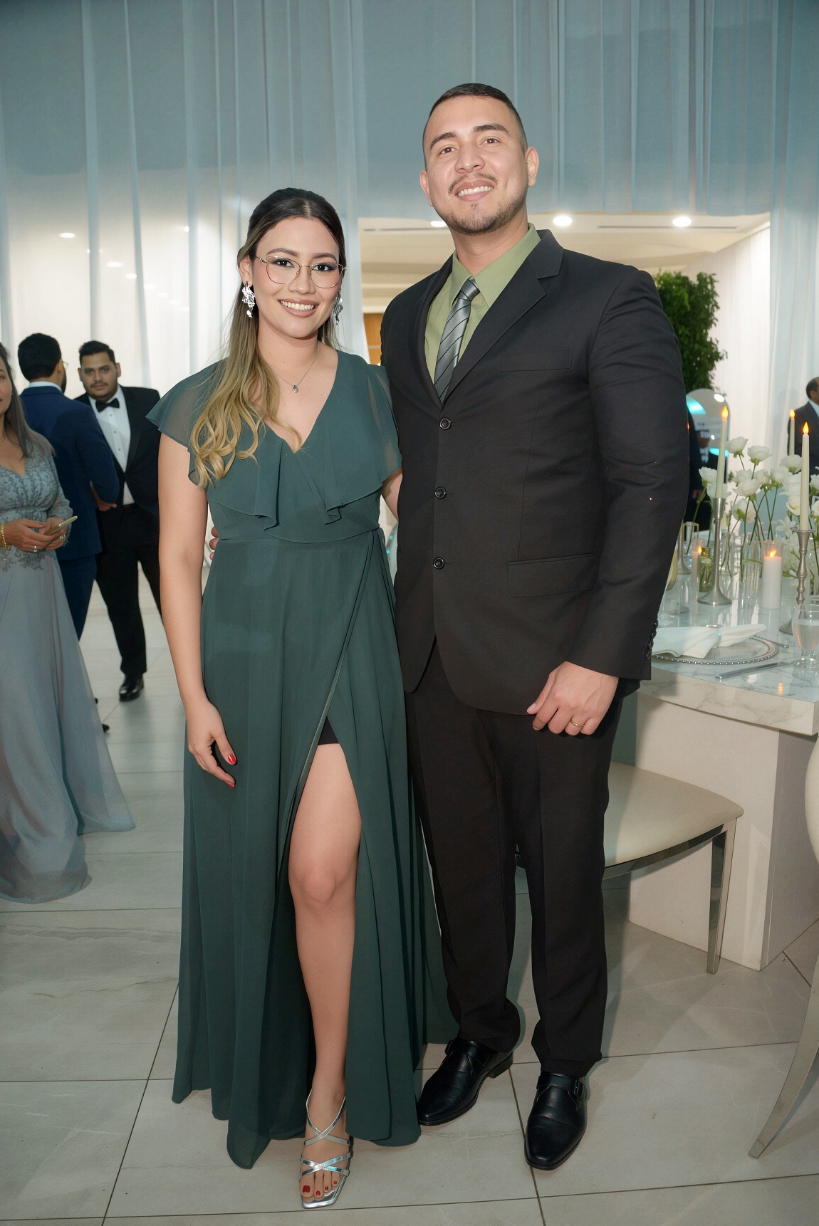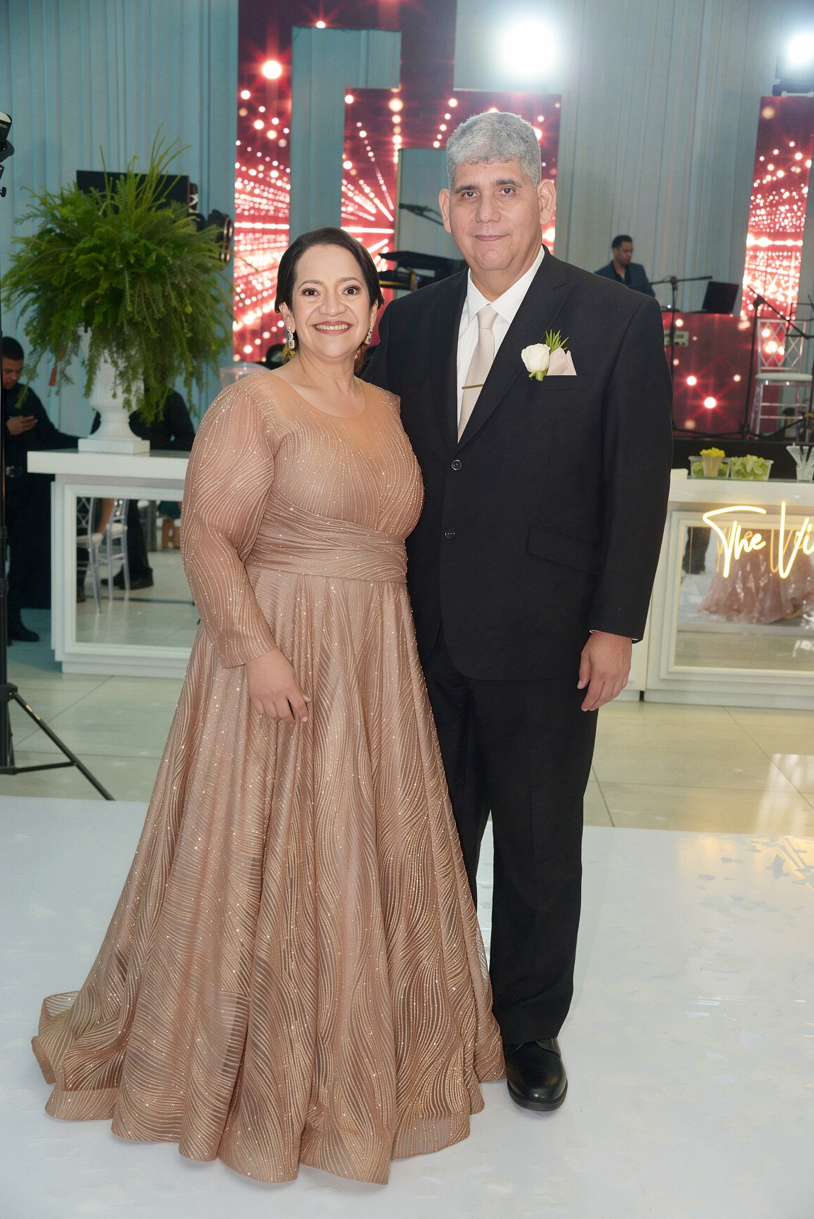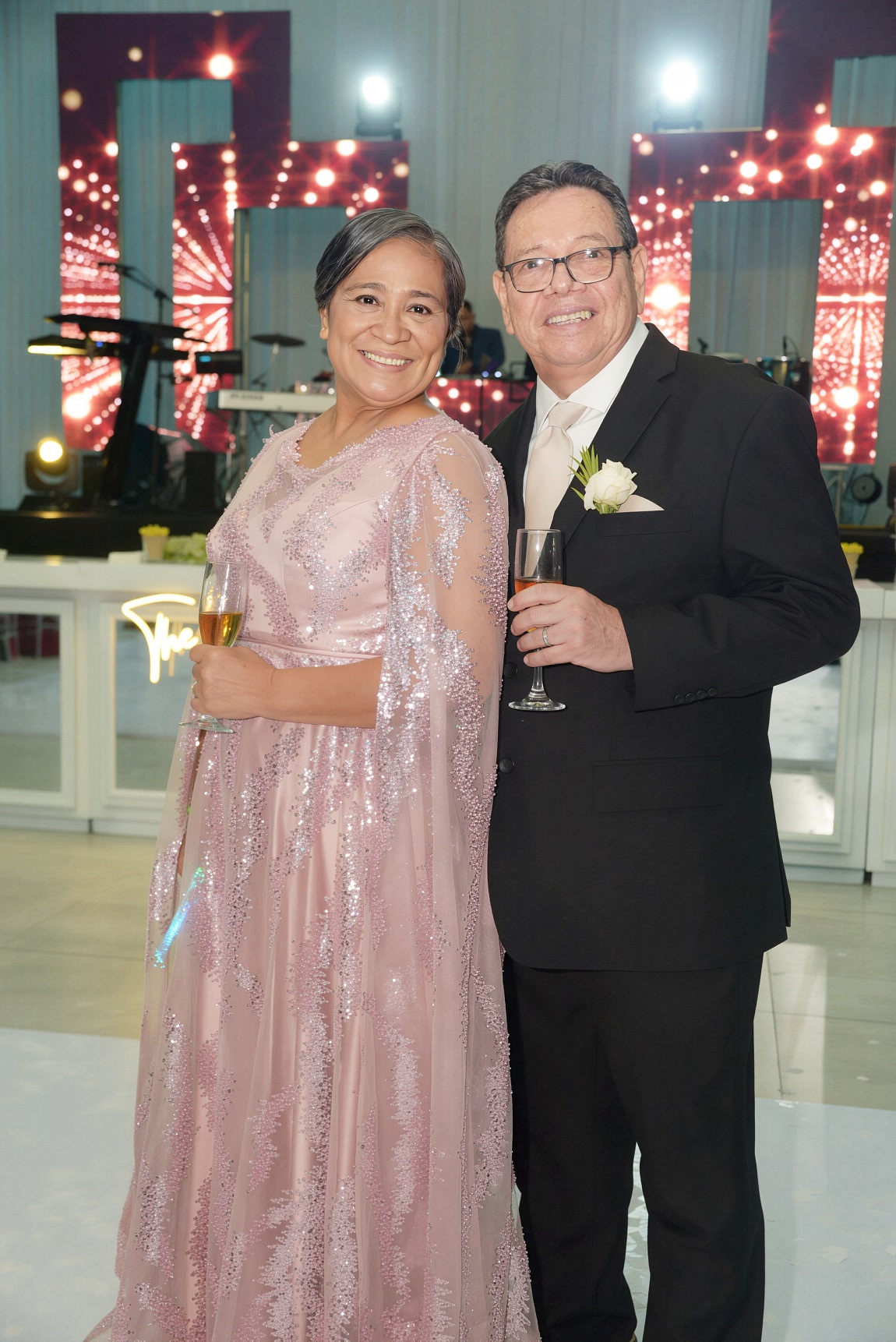 Posteriormente, los recién casados sorprendieron a sus invitados al llegar al salón Napoleón del Centro de Convenciones en un elegante auto clásico descapotable. La velada continuó con el tradicional brindis de los padres —Raúl Villanueva, Alma Odilia Pesquera, Edwin Cruz y Leslie Espinal— y el primer baile de la pareja, sellando una noche que fue el reflejo perfecto de su amor.