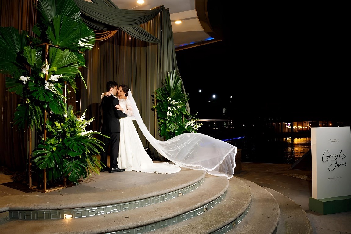 Tras la ceremonia religiosa, los salones Nazareth y Natividad del Club Hondureño Árabe se convirtieron en el telón de fondo para la recepción soñada por Grisel y Juan. Inspirados en una estética clásica y elegante, el montaje decorativo y la puesta en escena, a cargo de Fiestas y Más, transformaron la estancia en un ambiente idílico, diseñado meticulosamente para celebrar el amor de los recién casados.