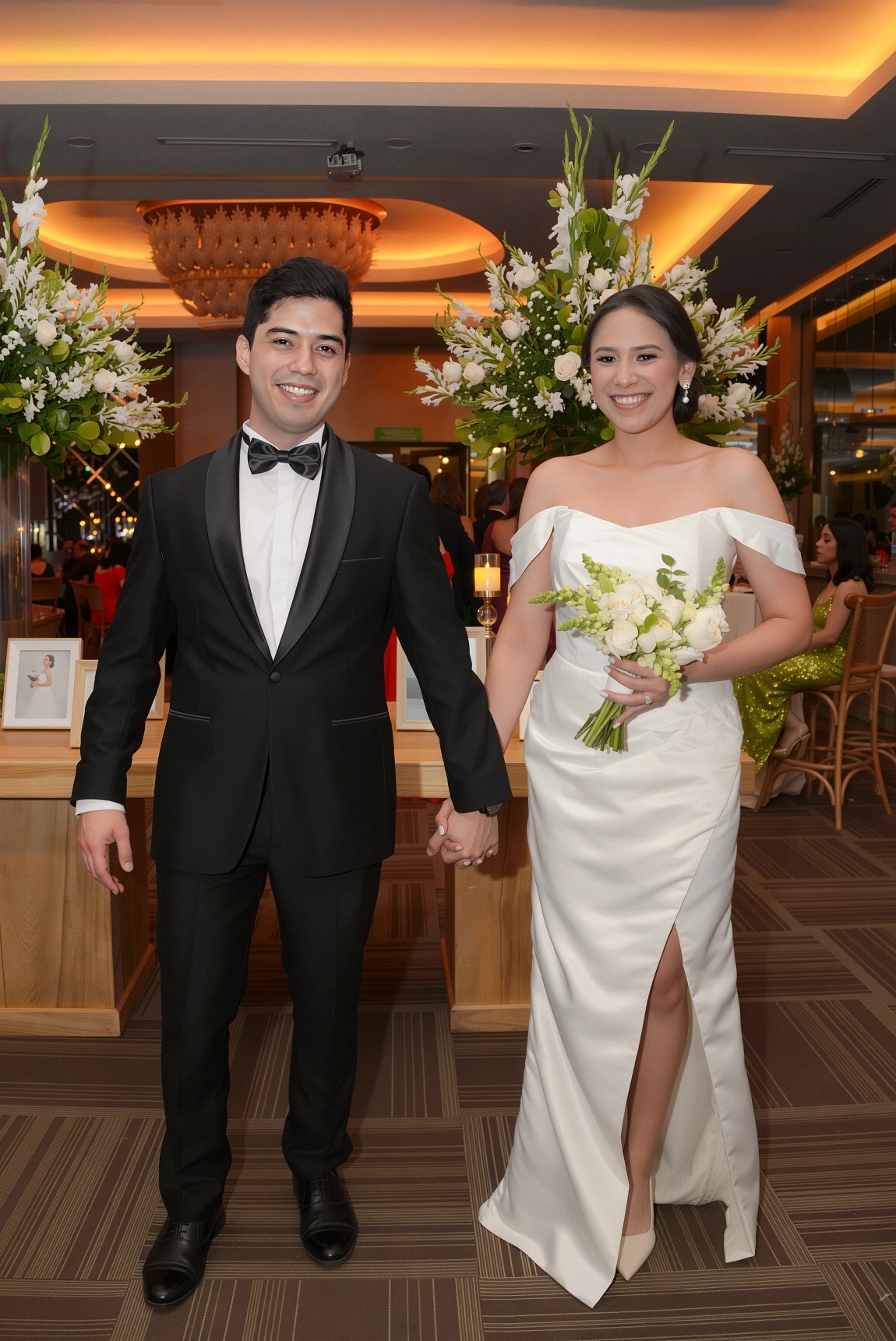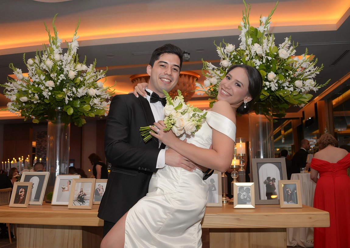 Fue una noche en la que Grisel y Juan brillaron con luz propia. Sus estilos personalizados les permitieron lucir sobrios e impecables. Grisel se decantó por un doble vestuario: el primero, un elegante ajuar con escote asimétrico, mangas largas y una amplia falda que culminaba en una majestuosa cola. Para la fiesta, optó por un segundo diseño más cómodo que le permitió compartir con libertad con todos sus invitados. Un estilismo de cabello pulcro y un maquillaje natural complementaron el look de la novia perfecta.