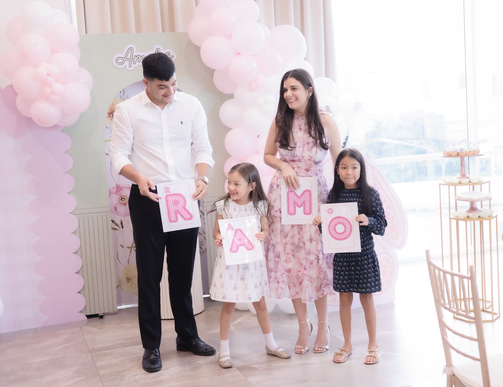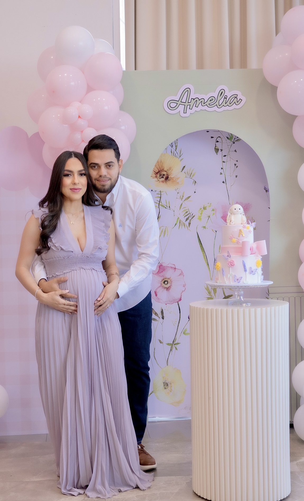La planificación del evento destacó por su delicadeza y buen gusto. La estancia fue transformada en un jardín de ensueño gracias al talento decorativo de la firma AR Events by Ada Rivera, quienes fusionaron armoniosamente los tonos rosa y blanco para crear una atmósfera acogedora y sofisticada.