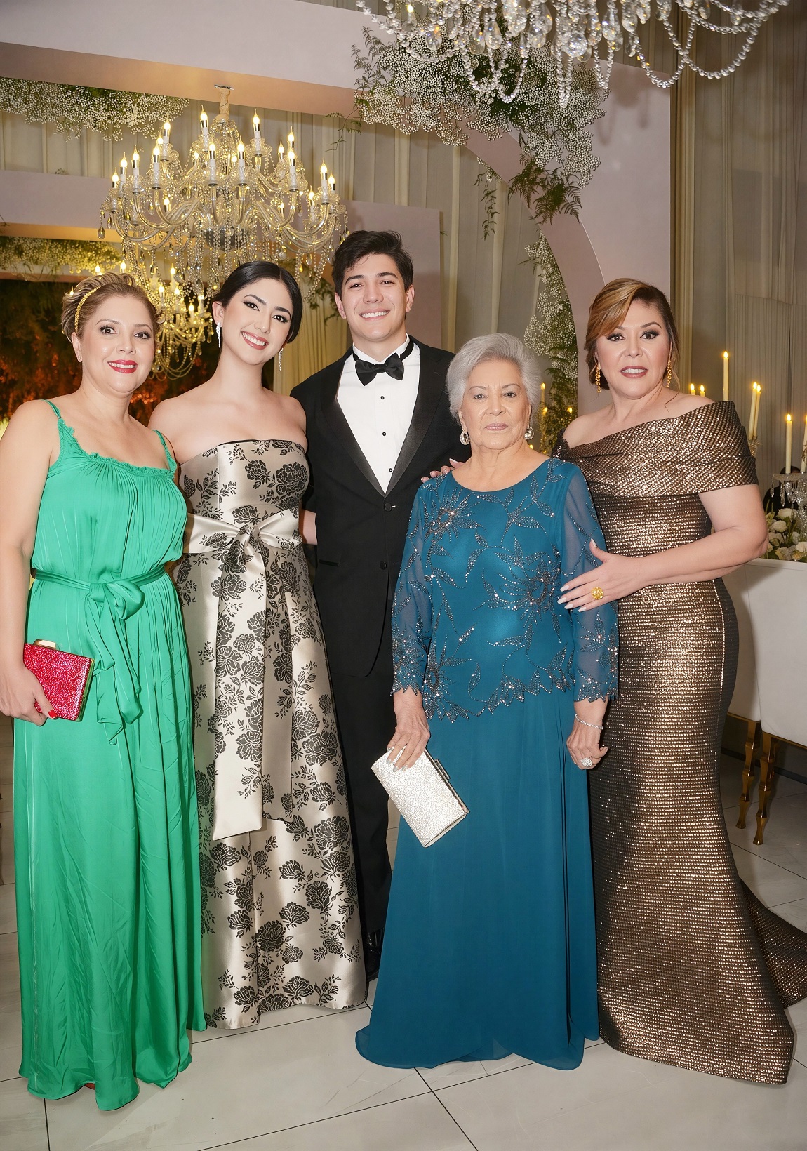 Espectaculares y elegantes lucieron en la boda Valladares-Merino: Claudia Córdoba, Atenas Vijil, Valentino Prego, Hilda Sabillón y Ruth Rápalo.