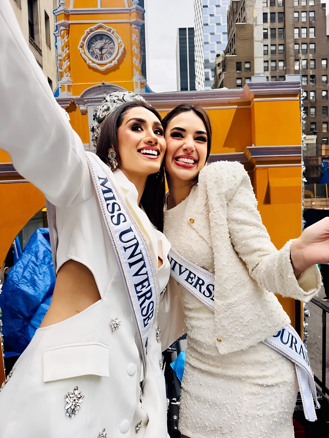 Nuestra soberana, Alejandra Fuentes, Miss Universe Honduras, está más que lista para brillar en Tailandia…Fue madrina del “Desfile de La Hispanidad” en Nueva York, donde también brillo en su año Rebeca Rodríguez, de punta en Chanel…La olanchana se perfecciona en vestuario con sus directores, esperamos trajes a su altura, nada de la “Tía Gertrudis” o “Gertrudianos” como en nuestras ultimas soberanas…Elie Saab, Tony Ward, Valentino, Ángel Sánchez, Oscar de La Renta o Carolina Herrera…¡Aunque sea rentados!… Alejandra compartiendo con Miss Guatemala Universo.