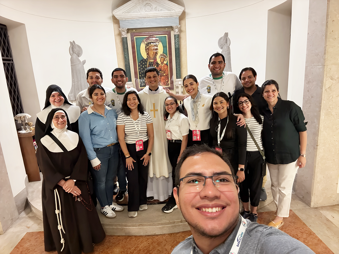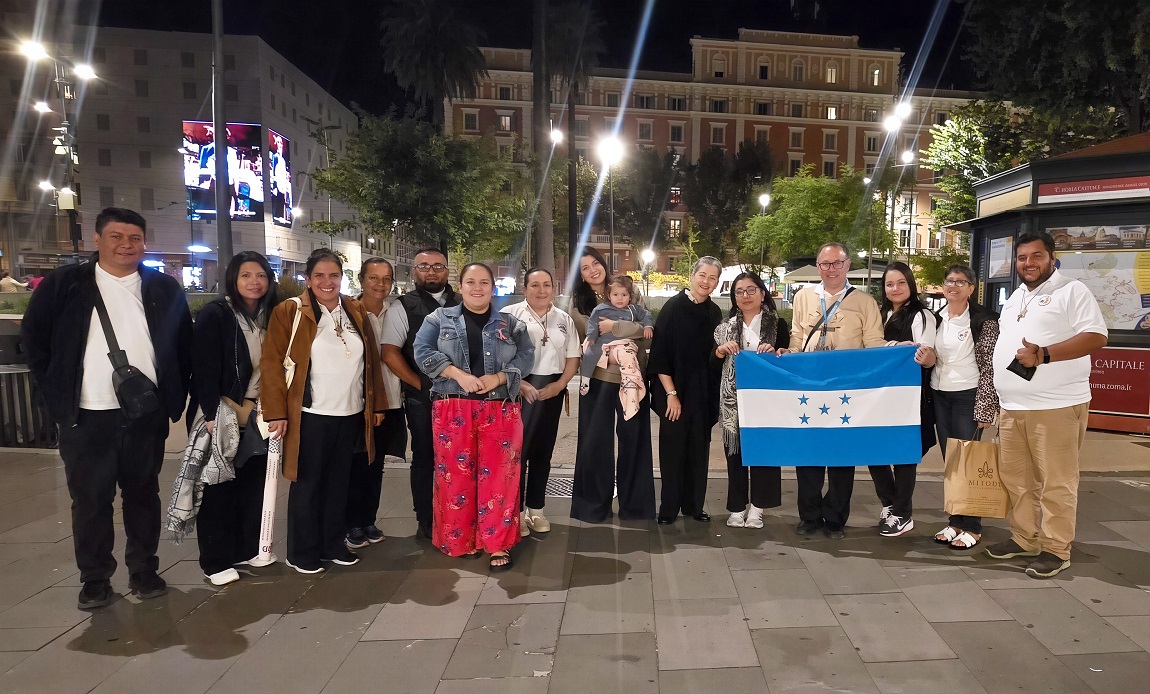 Durante la semana previa, la Embajadora Gilliam Noemí Gómez Guifarro, tuvo la oportunidad de compartir con un grupo de peregrinos de San Pedro Sula que participó en el Jubileo de los Catequistas y del Mundo Misionero en Roma.