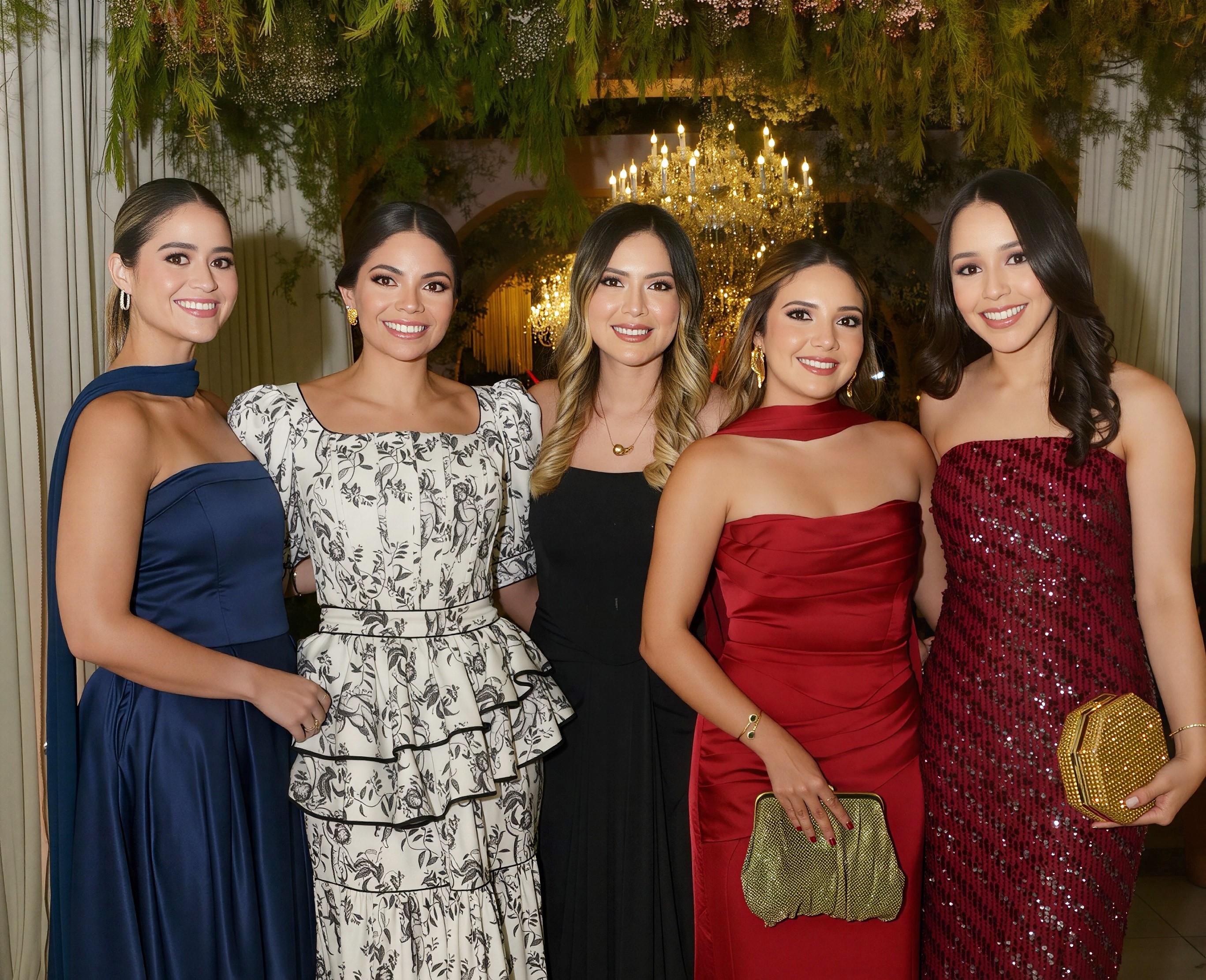 Espectaculares y elegantes lucieron en la boda Valladares-Merino: Claudia Córdoba, Atenas Vijil, Valentino Prego, Hilda Sabillón y Ruth Rápalo.