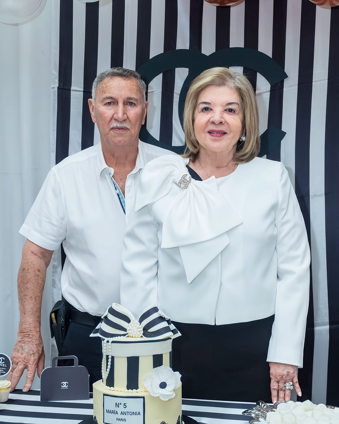 *.-Ataviados con el “dress code” de la celebración, la abogada María Antonia agradeció y departió con los presentes, en un convite conducido por el popular locutor Jimmy Tovar y animado musicalmente por la talentosa Karlibeth Ortega…La diva de la bachata deleito a los presentes con los temas que han marcado la vida de la abogada Fernández en décadas…Todo en modo Chanel, desde la mantelería hasta el rico cake.