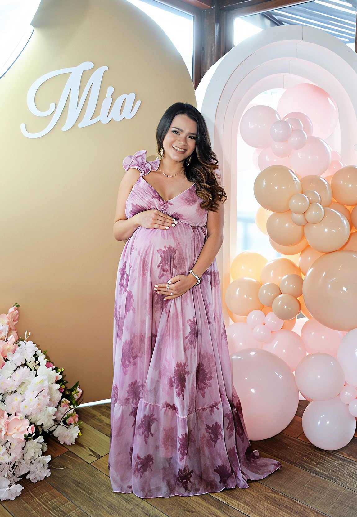 *.-Ataviada en vistosa túnica maternal corte lencero, en delicado chifón de seda en tono uva…Erika Julissa arribo radiante, feliz y bella en meses mayores, para departir con sus amigas y familiares la dicha que la embarga en sus últimas semanas de gestación…Sera en la venidera Semana Santa, cuando Mía Isabella corone la bendición del hogar formado por Erika y Elías…¡Ya rediseñan esa habitación con full Diunsa!