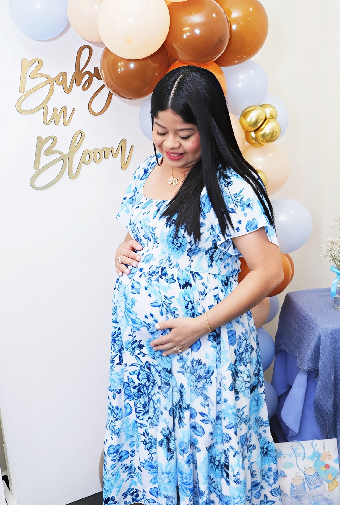 *.-Gilma lució impecable, ataviada en vistosa túnica maternal en tonos azul y blanco, develando el género del bebe en camino…Nelson Emilio esta súper cómodo en el vientre de su madre, pero en pocas semanas vera sus primeros rayos del sol…A la cita se hizo presente el esposo de la congratulada, siendo participe de las actividades propias del evento.