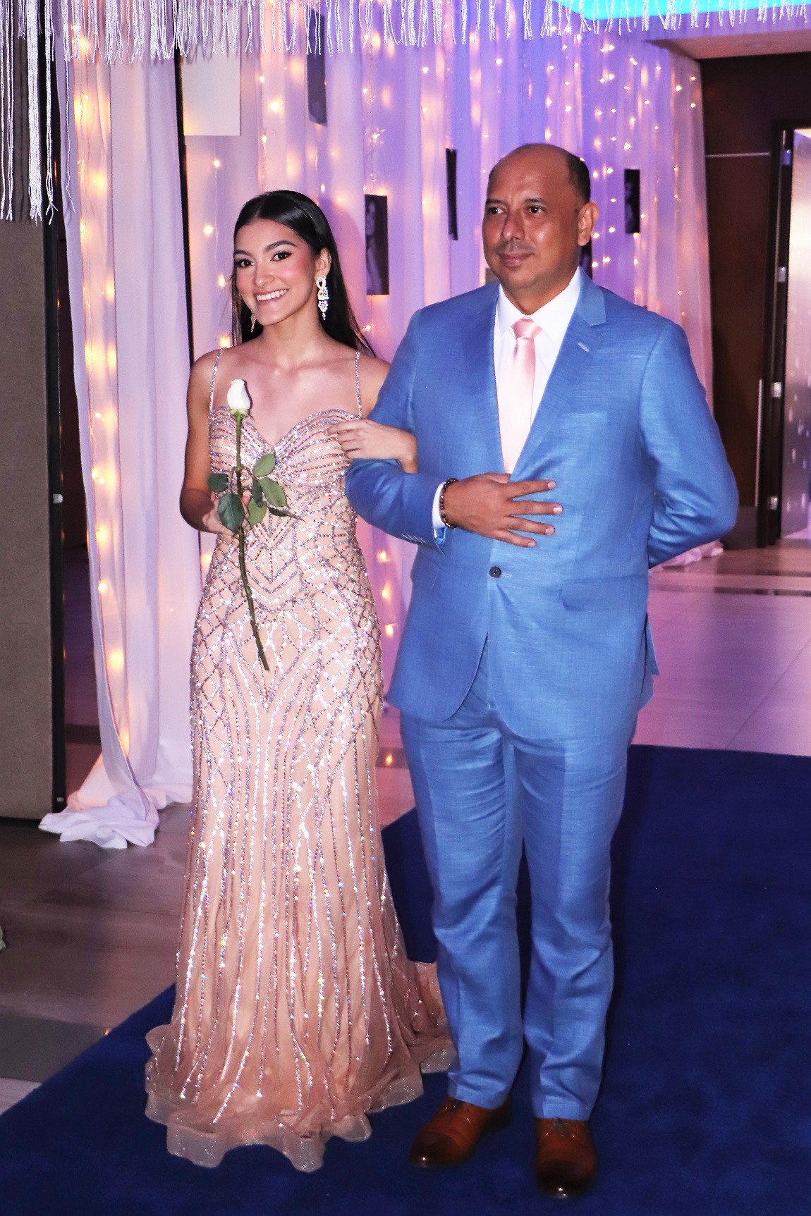 Los nuevos profesionales luciendo elegantes atuendos y cumplieron con el protocolo de rigor, entrando al recinto de celebración del brazo de sus orgullos padres para bailar el tradicional vals durante la estupenda velada.