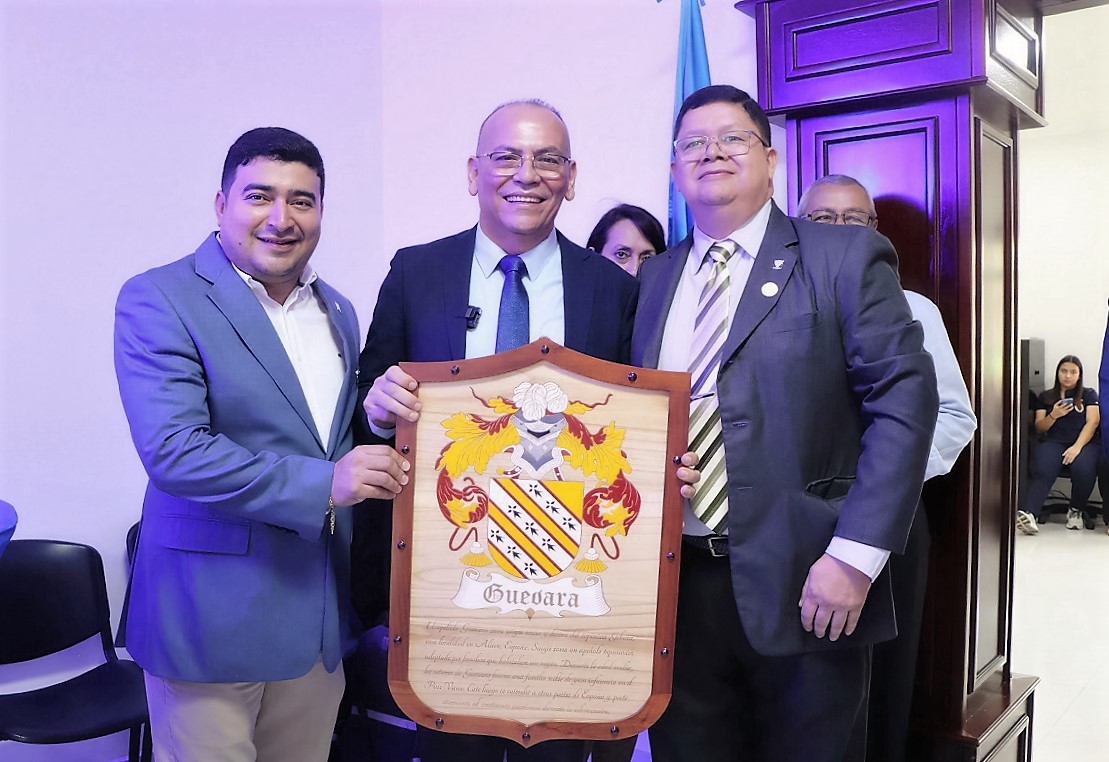 Carlos Polanco entregó una placa de reconocimiento a Iván Guevara en nombre del Colegio de Cirujanos Dentistas de Honduras capítulo # 2. Lo acompañó Diego Howell, presidente regional.