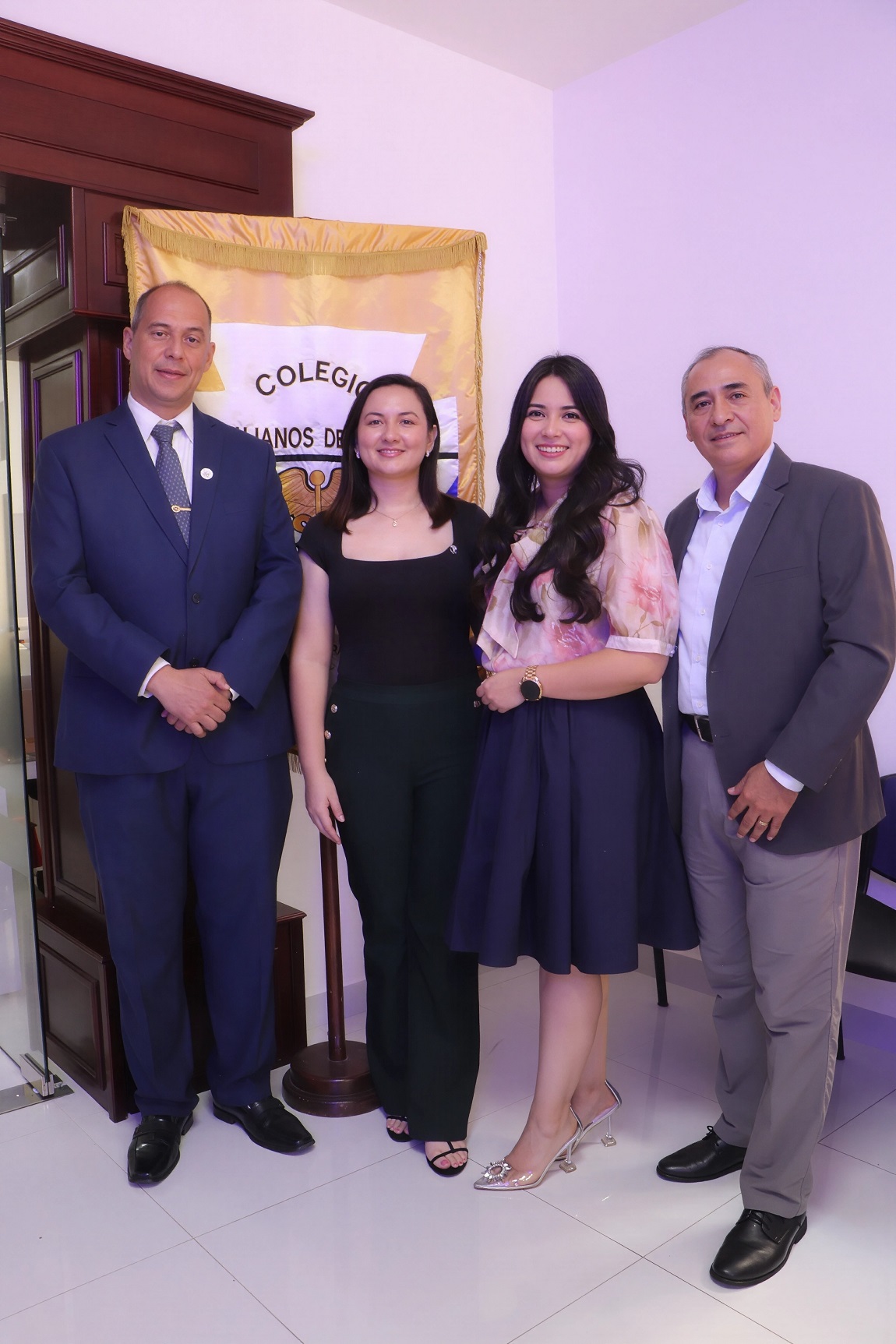 La jornada solemne comenzó con el acto de bendición de las instalaciones, seguido del tradicional corte de cinta inaugural. Este acto simbólico estuvo a cargo del presidente del capítulo central, Dr. Iván Guevara, el vicepresidente, Dr. Marcos Garay, acompañados por el presidente del Capítulo #2, Dr. Diego Howell, y la Dra. Sandra Lili Alvarado.