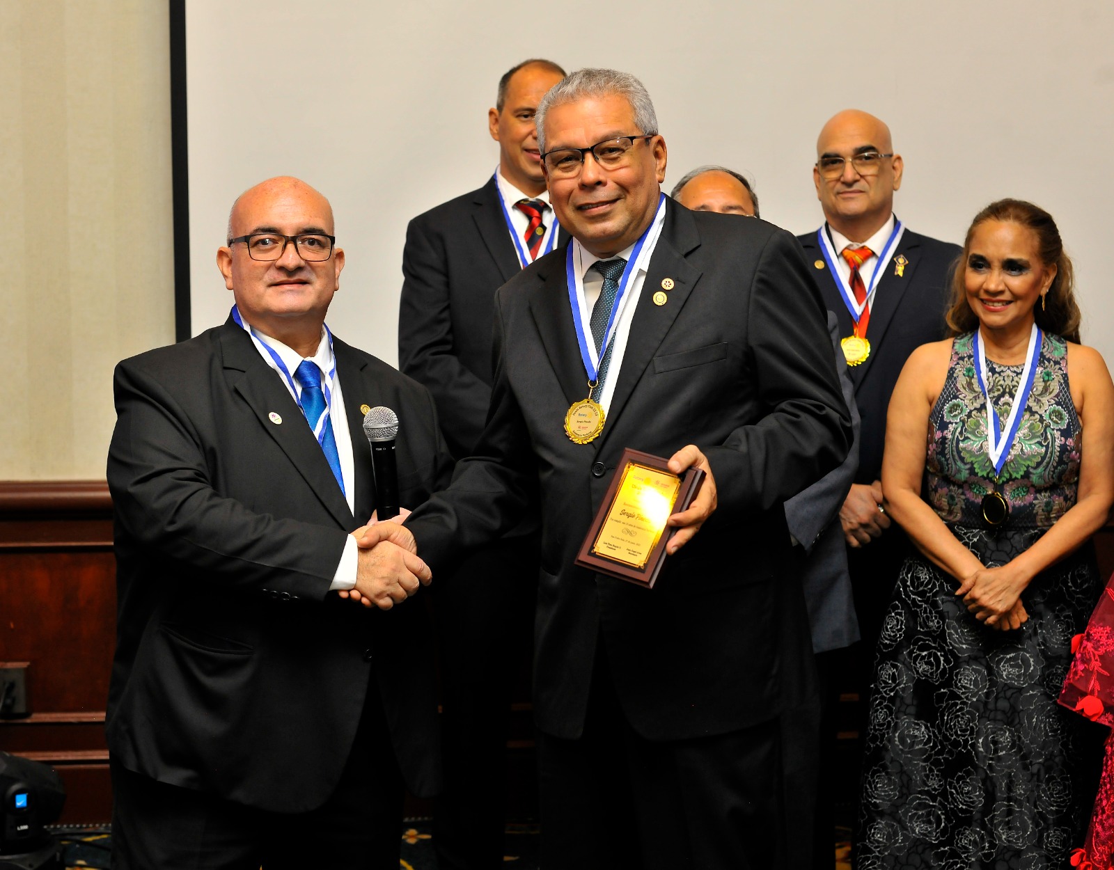 En los actos participó Enita Interiano, representante de El Gobernador para dicho Club y Luis Tieso Boquín, quien juramentó al nuevo presidente. La velada fue mágica y en un ambiente sobrio, familiar e impregnado de emociones, se galardonó a los rotarios distinguidos y se honró a Sergio Pineda como el rotario del año.