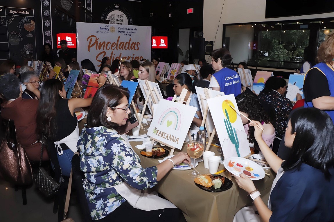 San Pedro Sula. – El Comité Auxiliar de Damas Rotarias del Club Rotario San Pedro Sula celebró con gran éxito el evento “Pinceladas Solidarias“, una jornada de arte y recaudación de fondos que convocó a más de 50 participantes en el Restaurante Perla Negra. La tarde se convirtió en un espacio dedicado a la creatividad, la convivencia y el servicio social, con un impacto directo en la comunidad sorda de la ciudad.