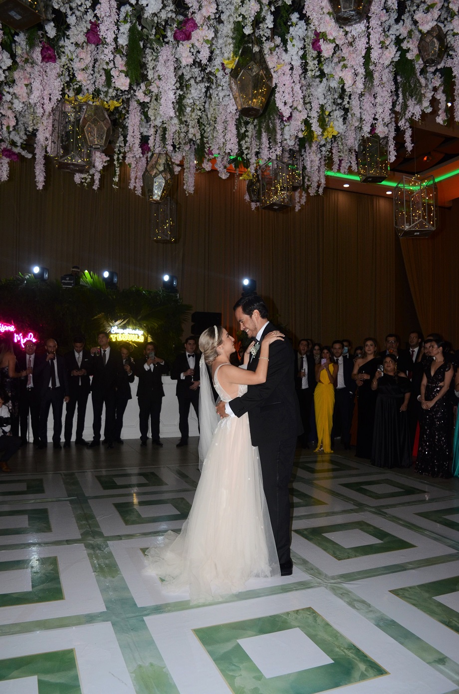 La pareja vistió su escenario de un estilo romántico chic y exclusiva elegancia. Así, y enlazándose a la perfección con la esencia característica del lugar, Stephanie y Luis Diego pusieron el broche de oro en cada rincón de los Salones Napoleón gracias a un juego exquisito de verde follaje y flores que, realzó el centro de la pista, centros de mesa que destacaron candelabros en bases de bronce, fusionados entre pequeños detalles que aportaron ese toque distintivo y personal al inmejorable diseño, montaje y puesta en escena de Denisse Gonzáles.