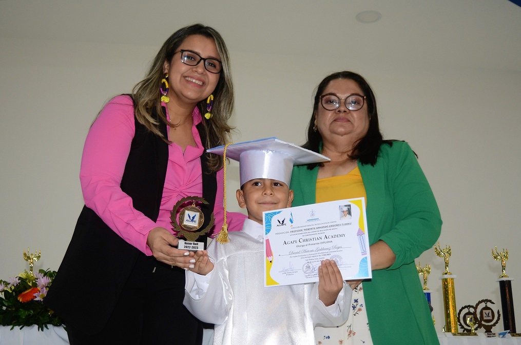 San Pedro Sula. – Momentos emocionantes se vivieron en la graduación de preescolar de Ágape Christian Academy, donde los pequeños brillaron con luz propia llenos de alegría y emoción por recibir su respectivo diploma que los acredita a pasar al siguiente nivel, primer grado.