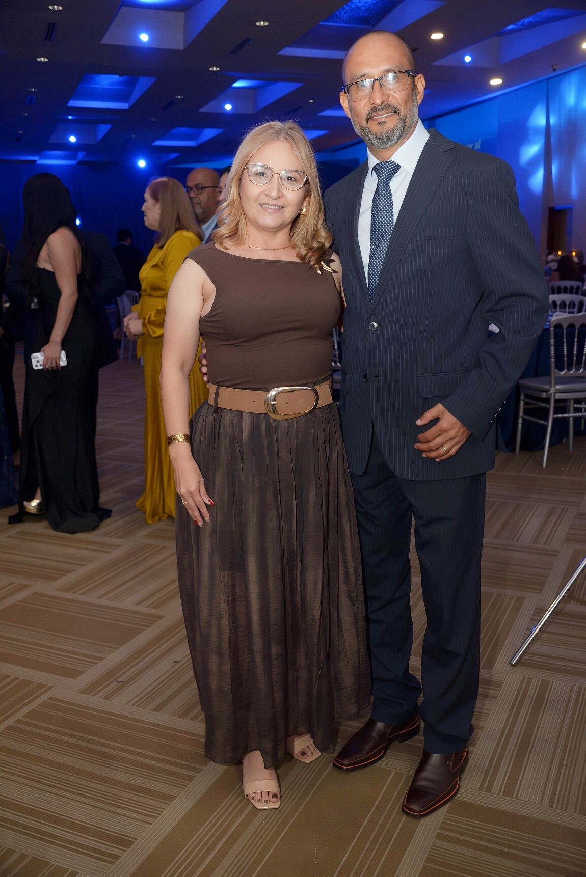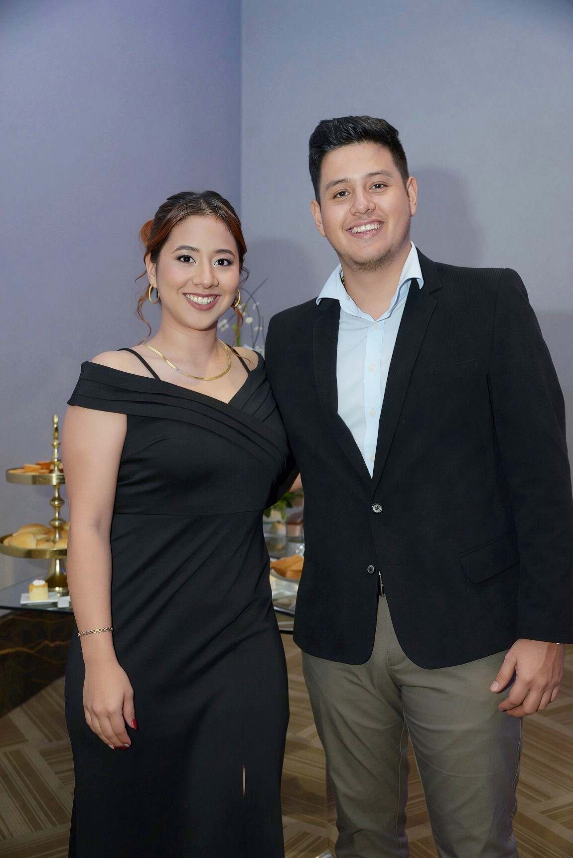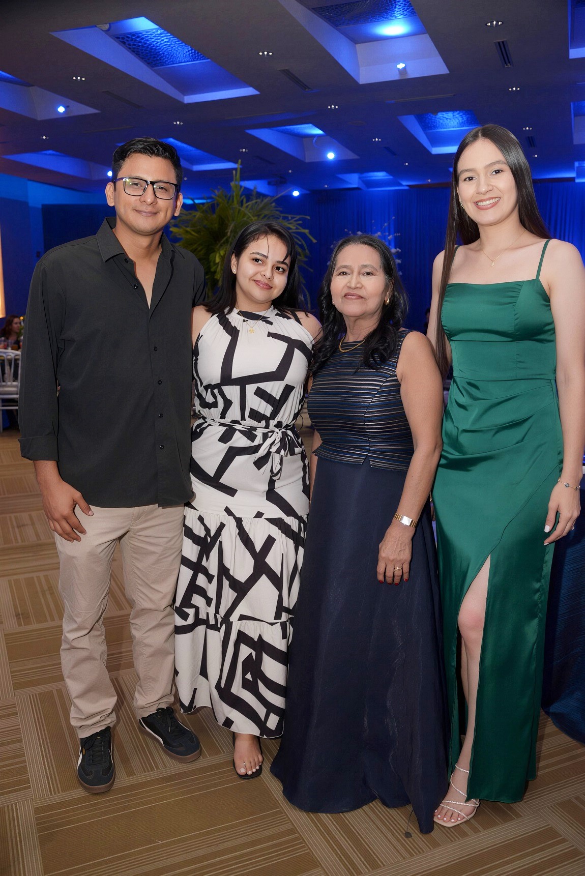 La cita tuvo lugar en el salón Jerusalem del Club Hondureño Árabe, el cual fue transformado para la ocasión con una propuesta estética sobria y original. La decoración, basada en una paleta de tonos azul profundo, negro y destellos dorados, estuvo bajo la experta dirección de su hija, Judith Aguilar, y su firma DG Wedding.