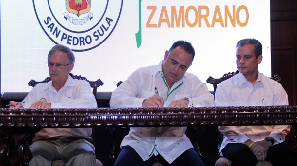 El convenio se suscribió en el Salón Consistorial entre el alcalde Armando Calidonio y el rector del Zamorano, Jeffrey Lansdale, y como testigo de honor Alejandro Osorio, oficial de donantes para Honduras de dicho centro de estudio superior, donde actualmente cursan 21 jóvenes sampedranos, quienes también participaron en dicho evento.