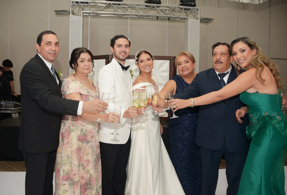 Tras finalizar la conmovedora homilía, los recién casados se dirigieron a celebrar su unión en una elegante recepción ofrecida en los salones Jordán y Natividad del Club Hondureño Árabe.