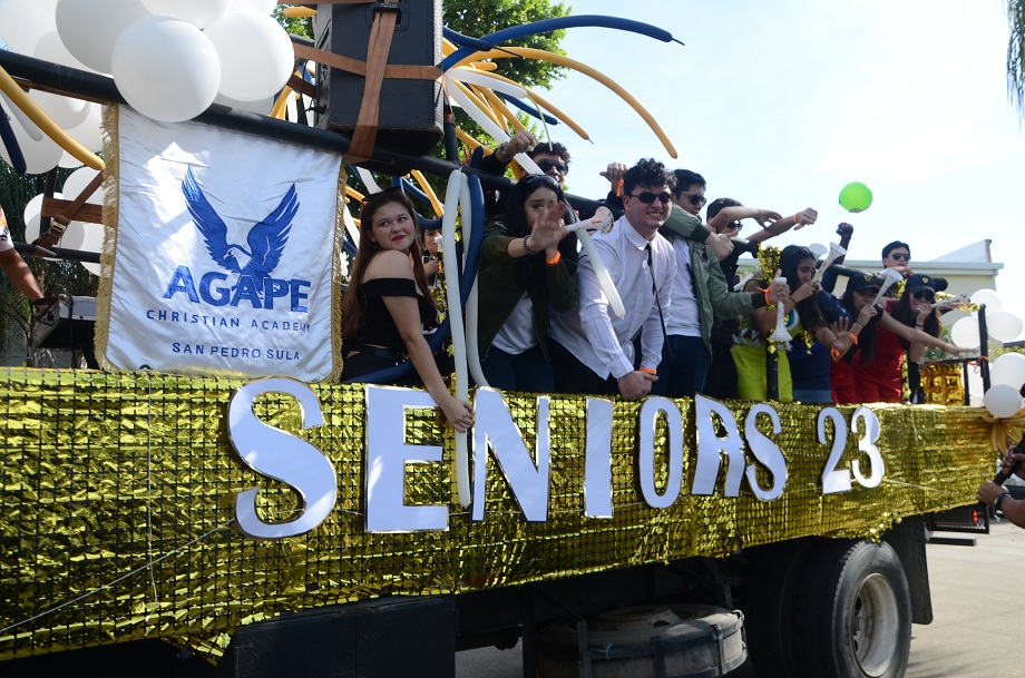 San Pedro Sula.- Vestidos con divertidos outfit que caracterizaron personajes de las películas más emblemáticas de Hollywood, enmarcaron la Seniors Entrance 2023 de la Agape Christian Academy, partiendo desde muy temprano en su colorida caravana para darle la bienvenida a su última temporada como estudiantes de secundaria.