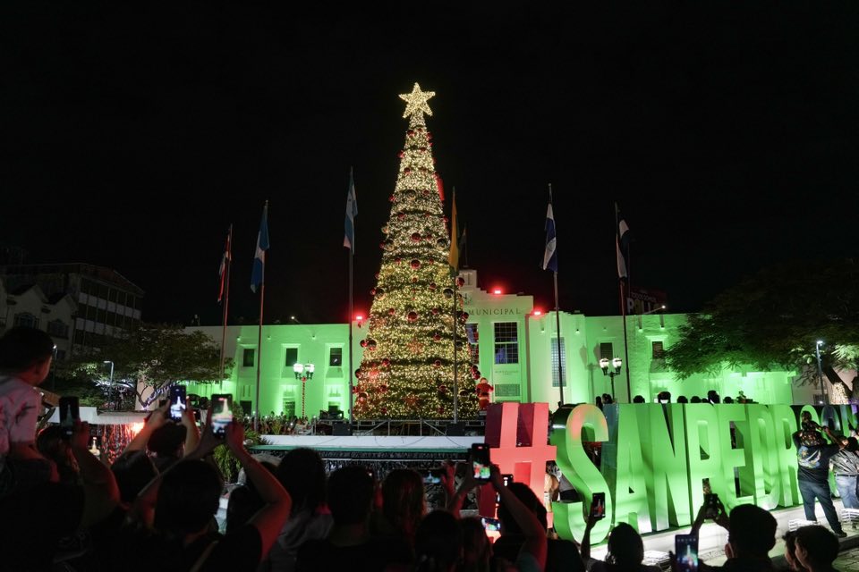 San Pedro Sula. – En un ambiente desbordante de espíritu navideño y calor familiar, el alcalde sampedrano Roberto Contreras inauguró oficialmente la temporada decembrina en San Pedro Sula con el espectacular encendido del Árbol de la Ciudad en el Atrio Municipal.