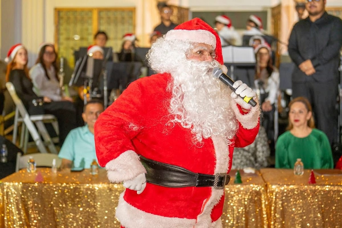El público fue deleitado con la majestuosidad de la Orquesta de la Escuela Victoriano López, que interpretó clásicos villancicos, creando una atmósfera mágica. La alegría infantil corrió a cargo de Santa Claus, quien posó para fotografías, y de Popeyito, encargado de repartir regalos.