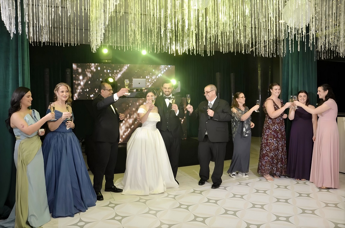 La felicidad de los recién casados fue compartida en primera fila por sus padres, Álvaro y Giselle Cálix con David y Christine Lamar, pilares fundamentales en este camino al altar. La complicidad entre ambas familias fue evidente, sumando una capa de emotividad a cada brindis y discurso.