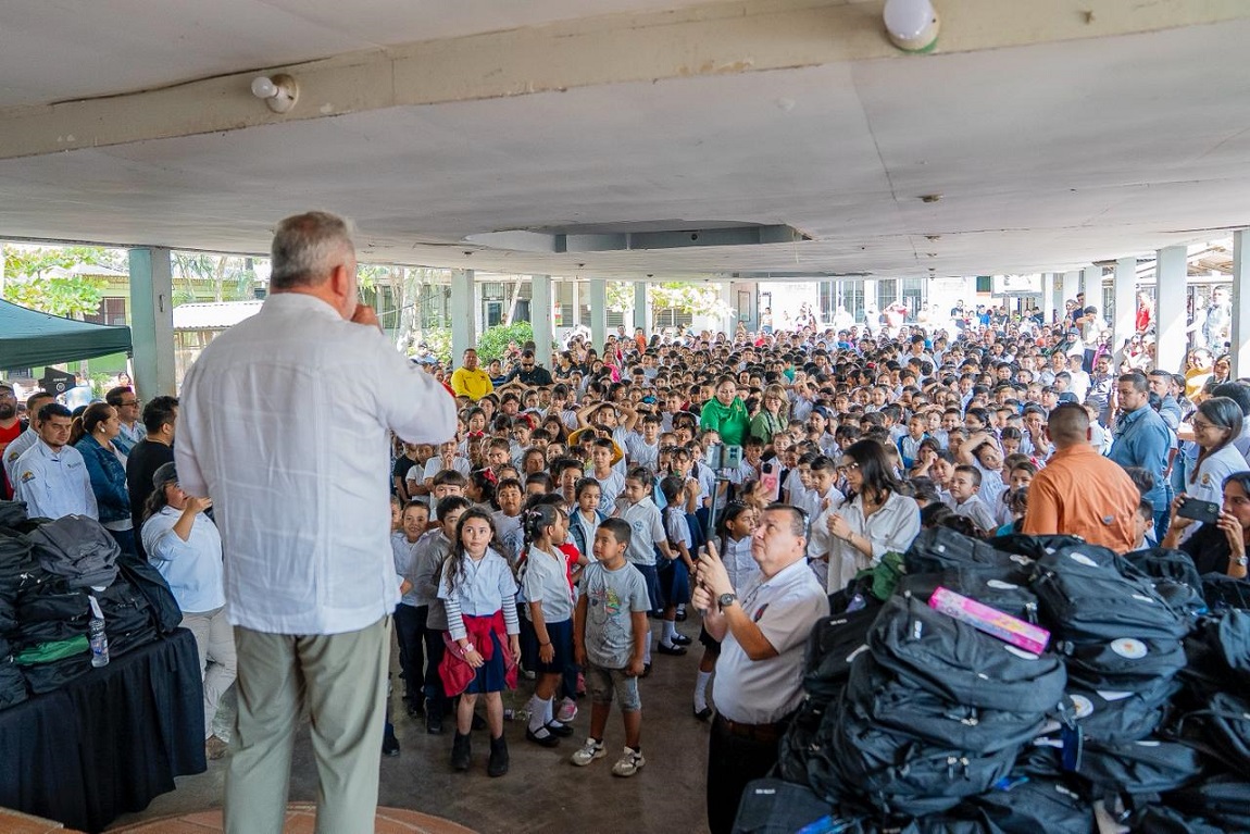 “Continuamos apoyando la educación primaria. Con esta entrega alcanzamos ya a 1,200 niños en este sector y la próxima semana seguiremos con la dotación de cubayeras (uniformes)”, destacó el alcalde Contreras.