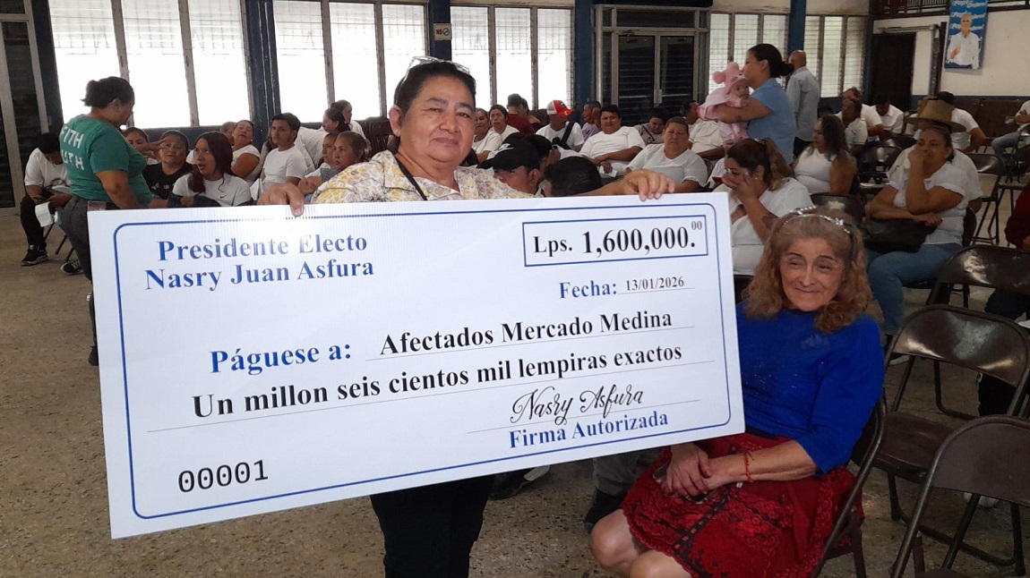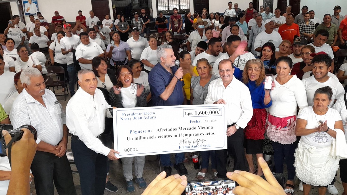 San Pedro Sula.- El presidente electo de Honduras, Nasry Juan Asfura, consolidó este día el apoyo a los a los 160 vendedores afectados que perdieron su patrimonio en el incendio que recientemente devastó sectores del mercado Medina, mediante la entrega de 1.6 millones de lempiras en asistencia económica directa.