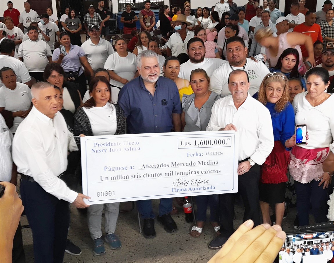 San Pedro Sula.- El presidente electo de Honduras, Nasry Juan Asfura, consolidó este día el apoyo a los a los 160 vendedores afectados que perdieron su patrimonio en el incendio que recientemente devastó sectores del mercado Medina, mediante la entrega de 1.6 millones de lempiras en asistencia económica directa.