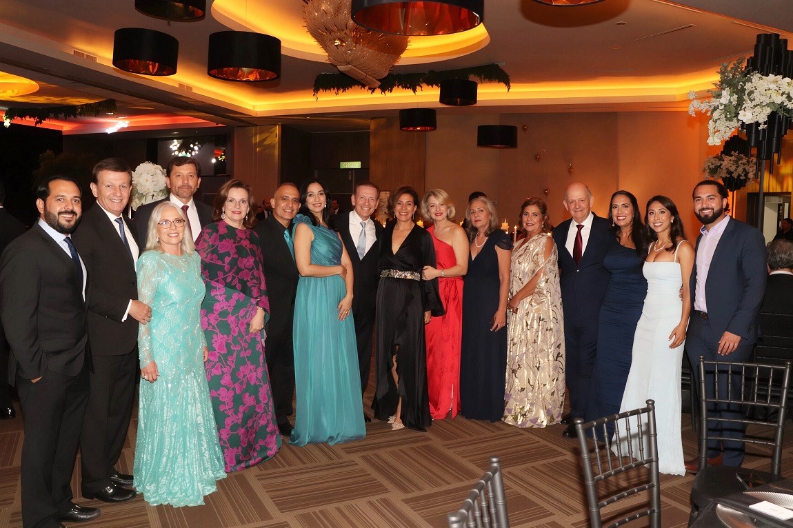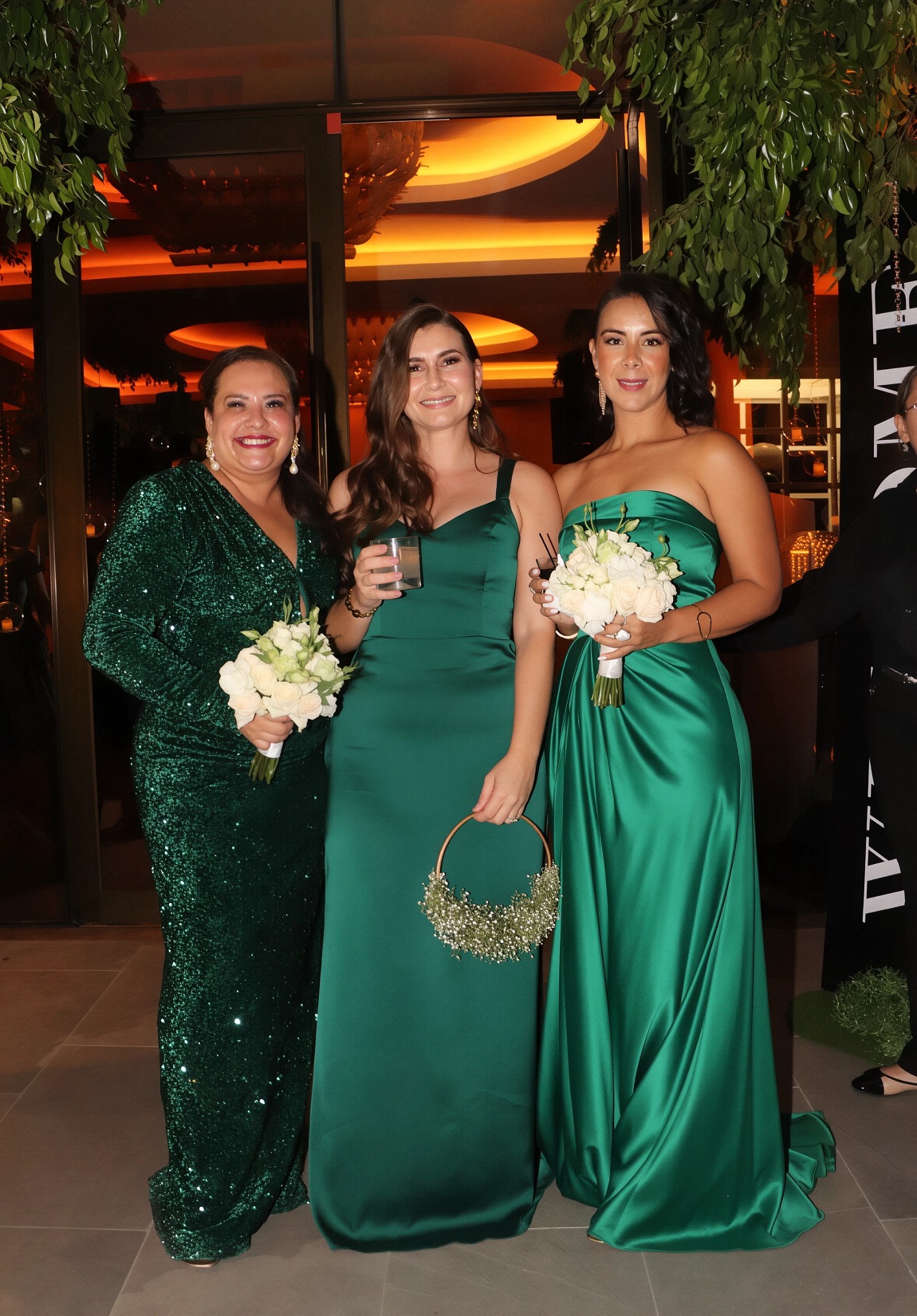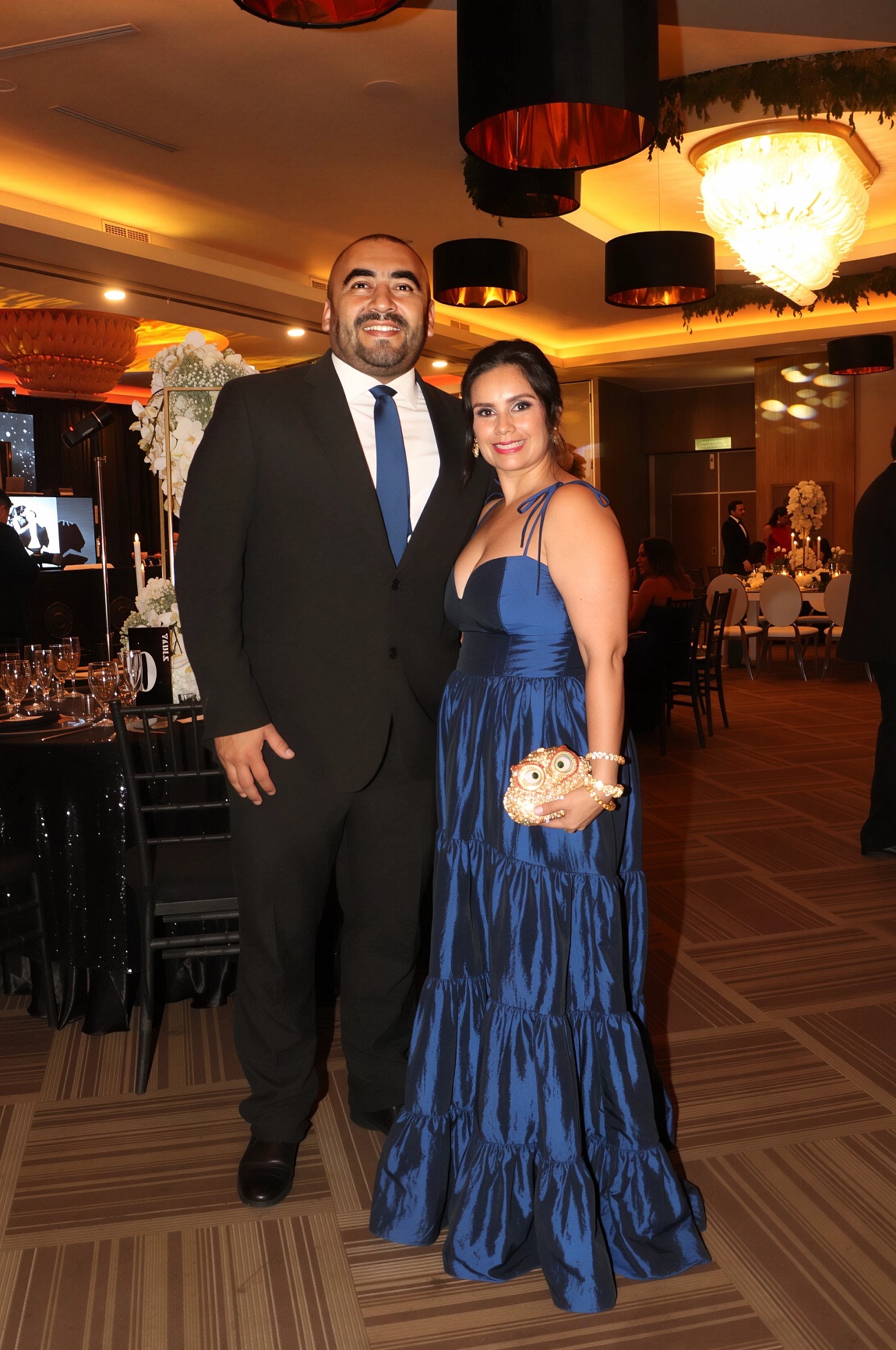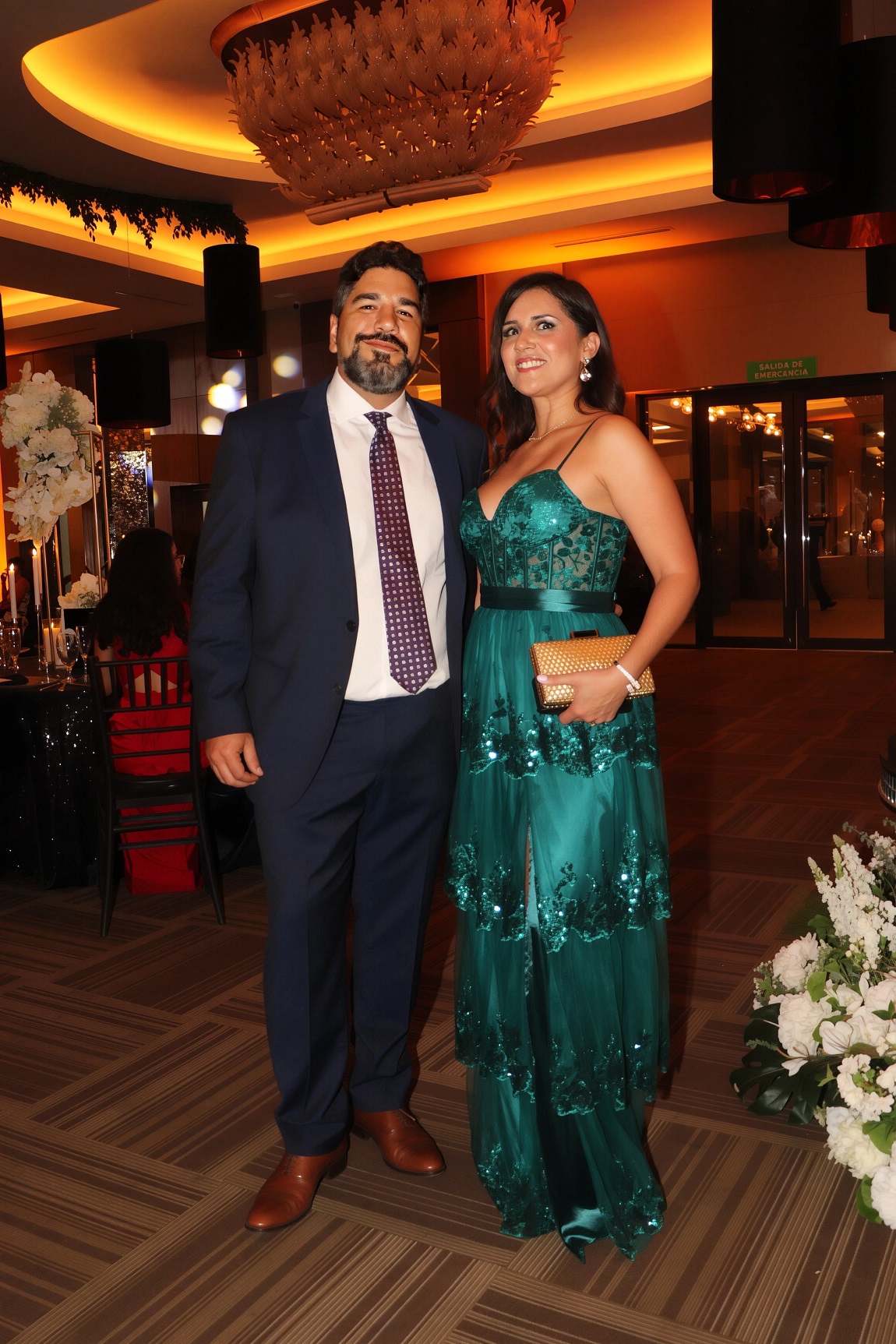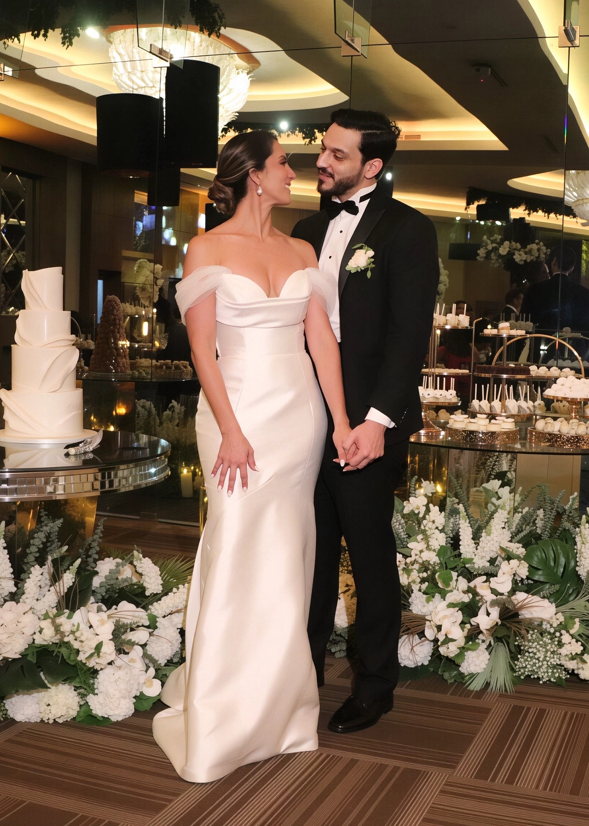 La decoración, una deslumbrante creación de Elías Del Cid, fue un derroche de elegancia: combinó ambientes con una sofisticada apuesta floral en blanco, dorado y negro, complementada con abundante follaje, imponentes candelabros, elegantes lámparas y una cálida iluminación.