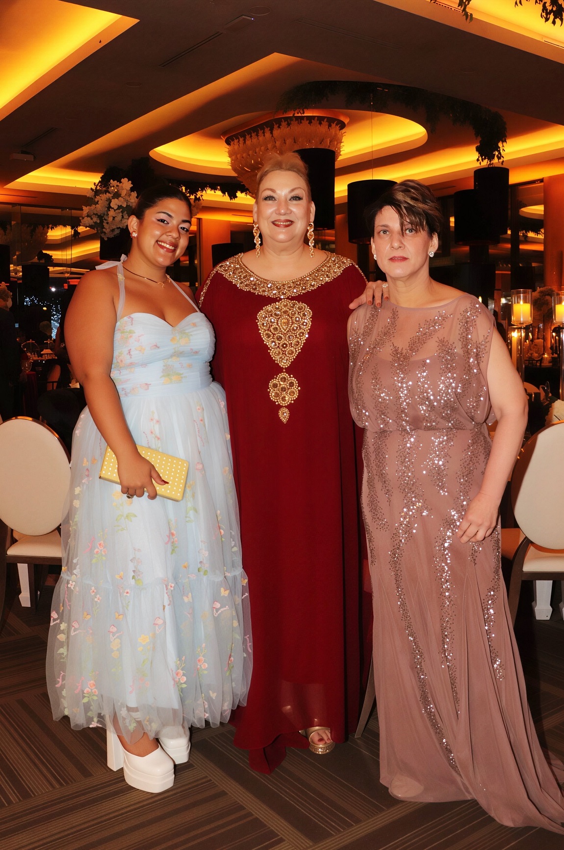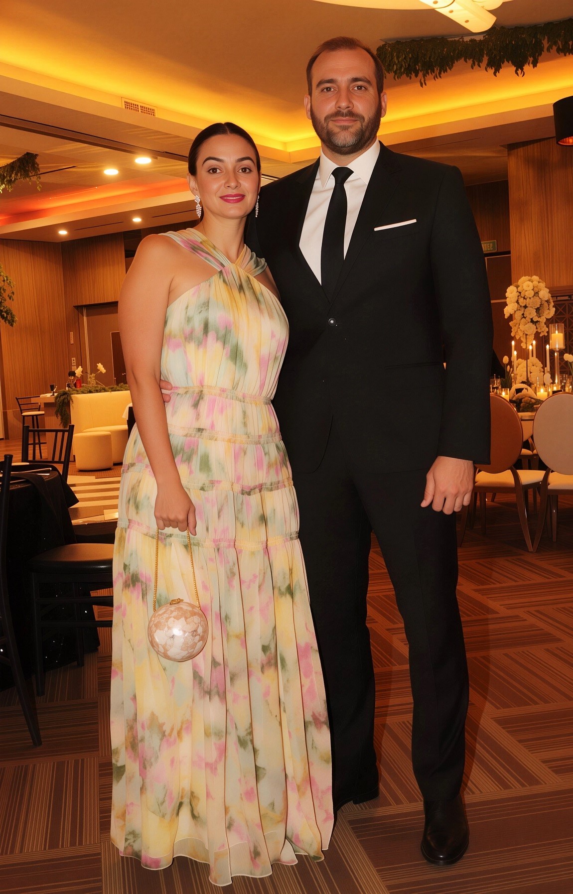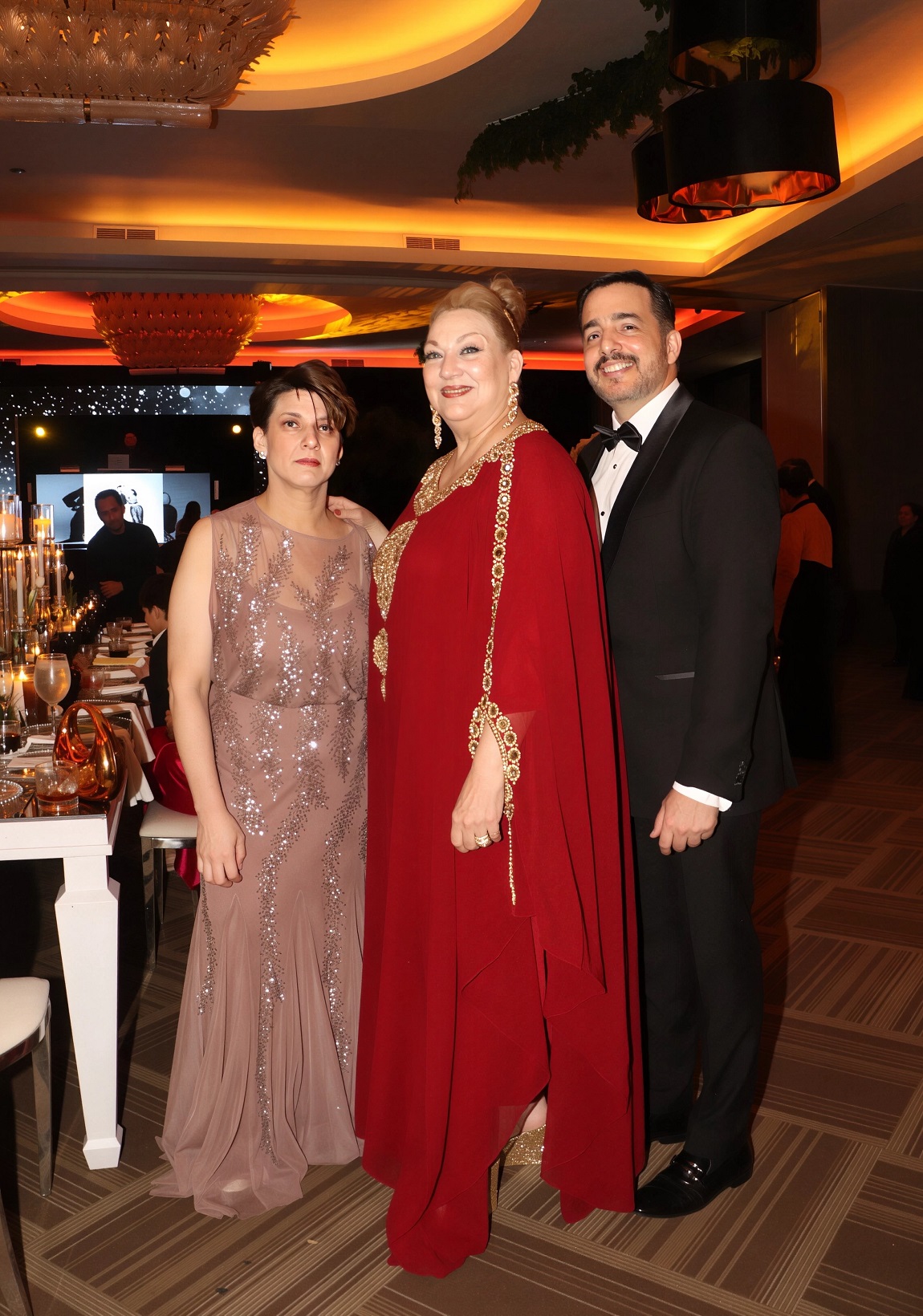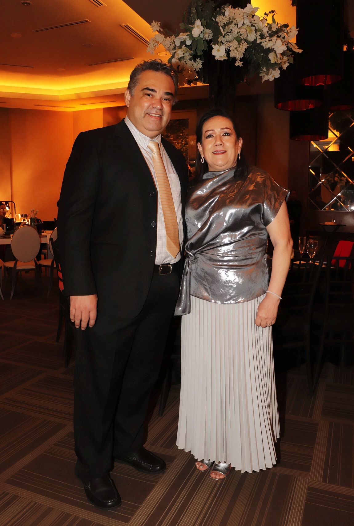 La decoración, una deslumbrante creación de Elías Del Cid, fue un derroche de elegancia: combinó ambientes con una sofisticada apuesta floral en blanco, dorado y negro, complementada con abundante follaje, imponentes candelabros, elegantes lámparas y una cálida iluminación.