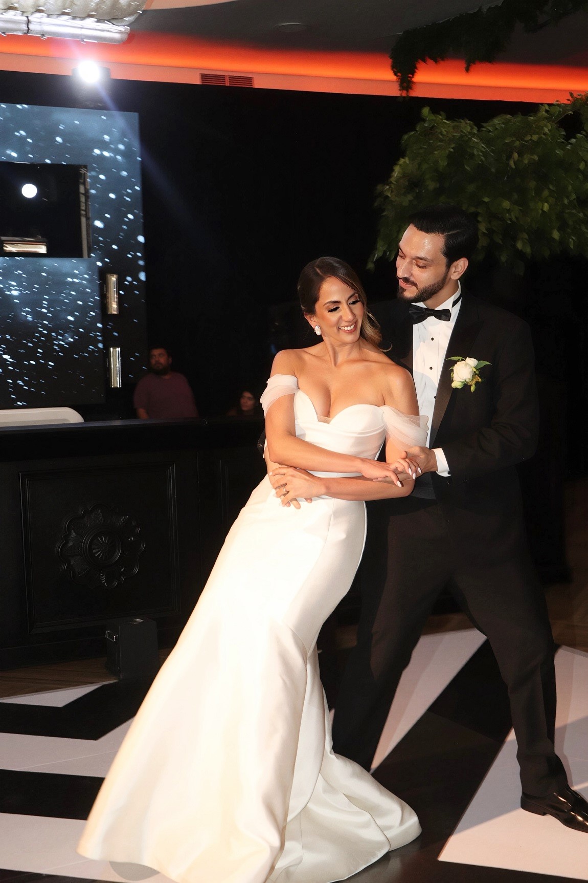 La pista de baile se ilumina para recibir a los protagonistas de la noche. Ofelia Nazar y Roberto Motta estrenaron su título de esposos con un tierno y emotivo primer baile , recibiendo una cálida ovación de todos los presentes.Al son de una melodía romántica, Ofelia Nazar y Roberto Motta protagonizaron su primer baile como marido y mujer.