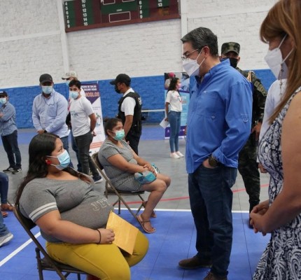 El mandatario supervisó este martes la jornada de inoculación en el gimnasio número 3 del Complejo José Simón Azcona, más conocido como Villa Olímpica, donde se dieron cita las mujeres en período de gestación del Distrito Central.