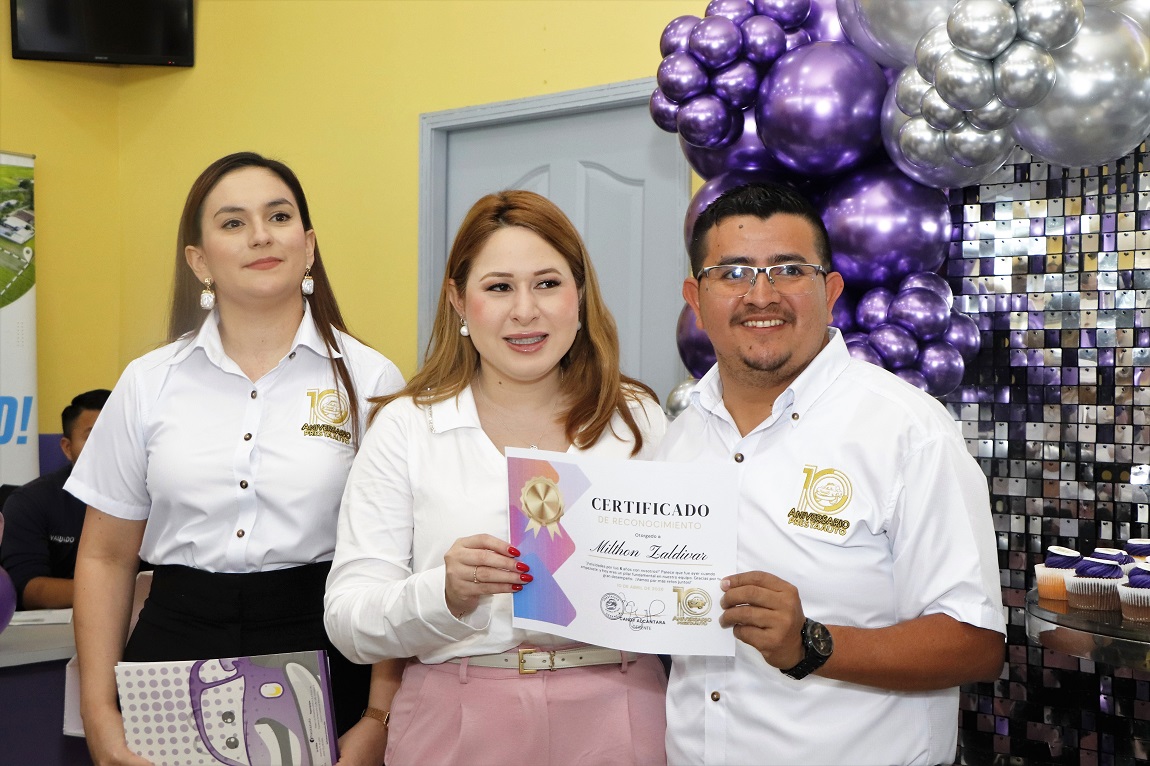 Como parte de la ceremonia, se entregaron reconocimientos especiales a los colaboradores con mayor trayectoria, destacando la labor de Milthon Zaldívar, Allan Escoto, Kimberly Medina, Mirna Fernández y Candy Alcántara. Asimismo, se distinguió a los aliados estratégicos de los autolotes locales, quienes han sido pilares fundamentales en el crecimiento y éxito de la empresa durante esta década.