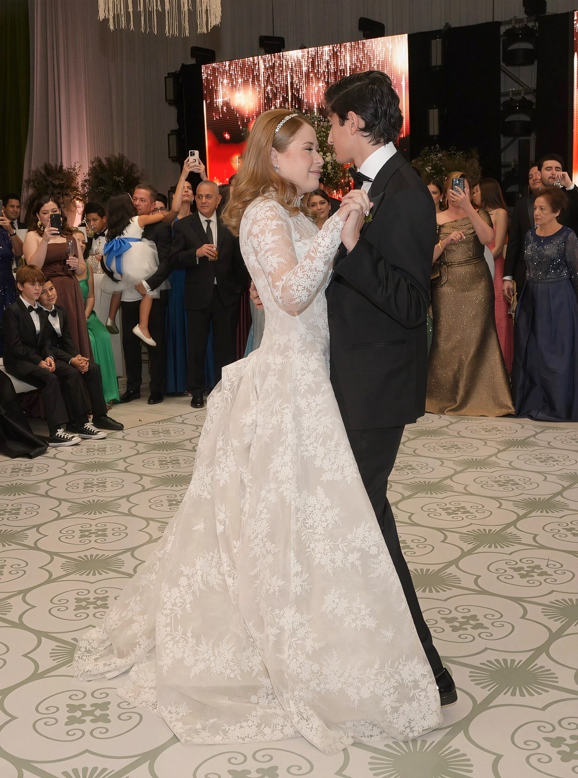 La pareja inauguró la pista de baile, sellando su unión con su primer vals como marido y mujer.