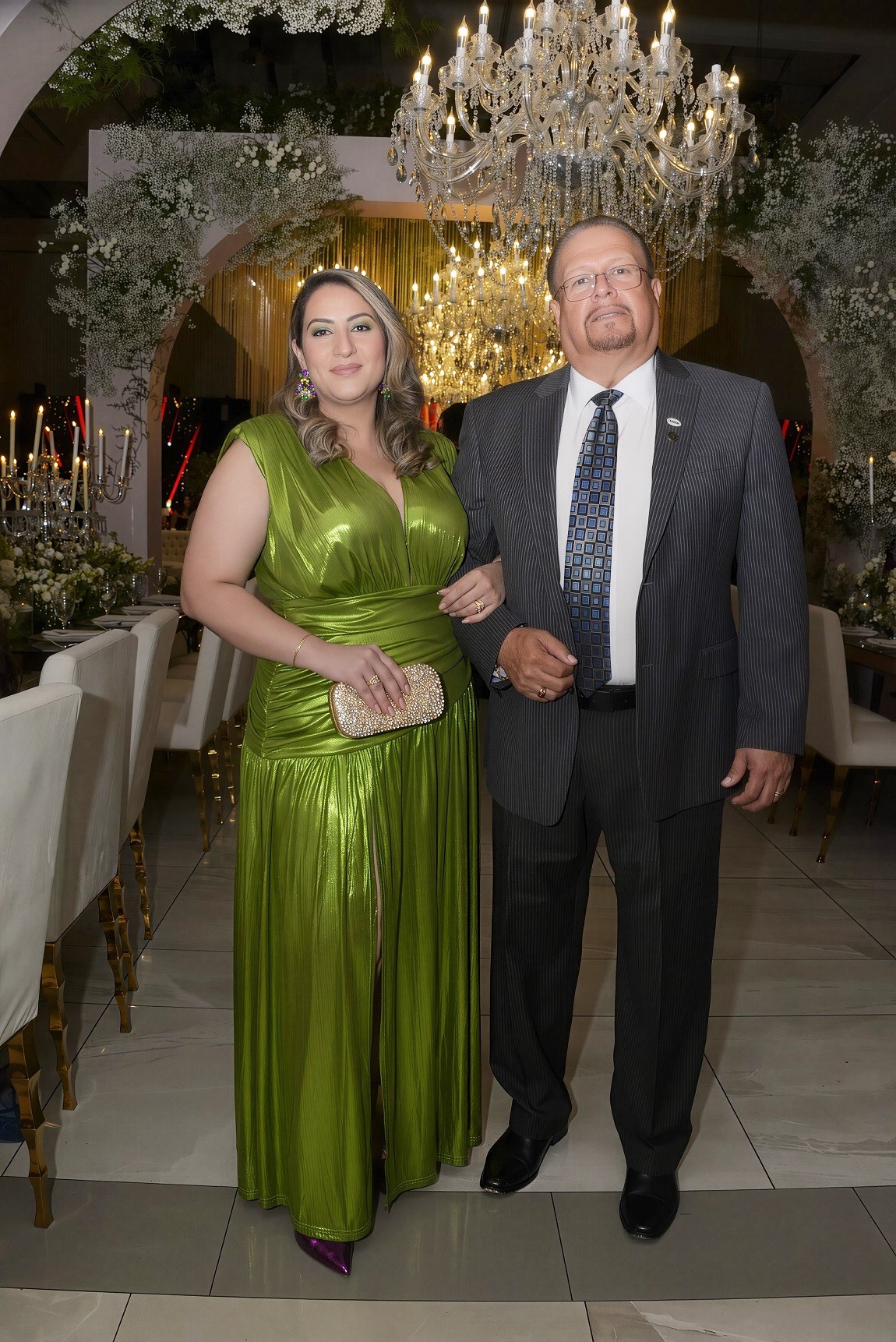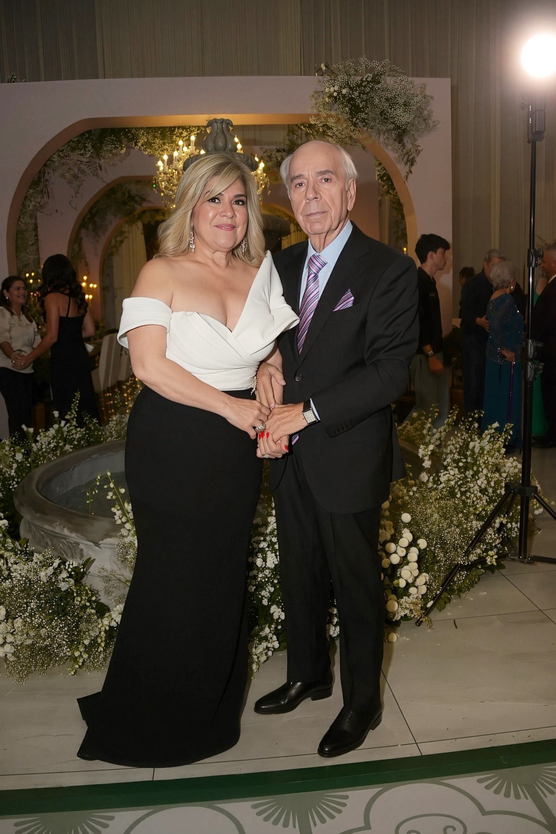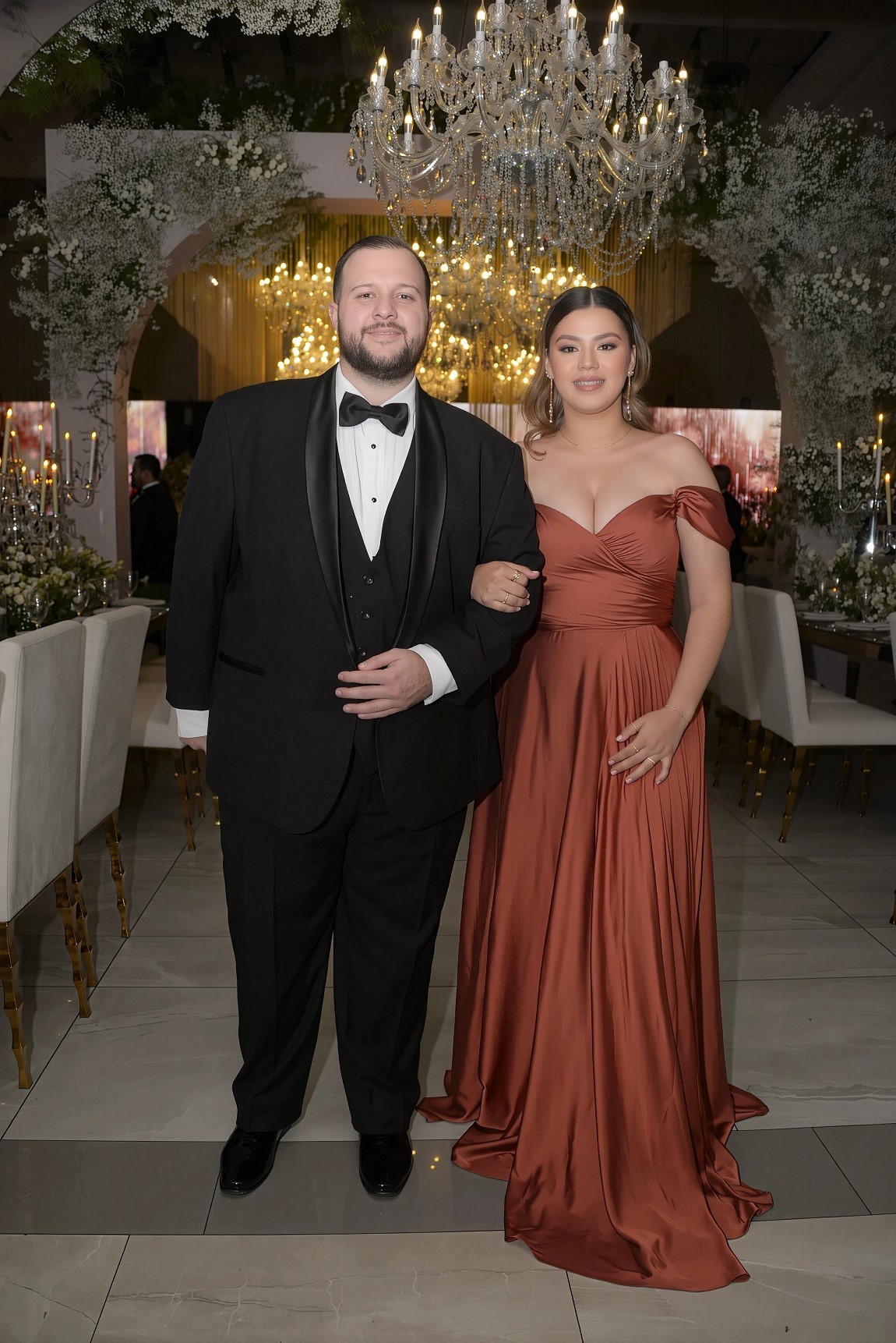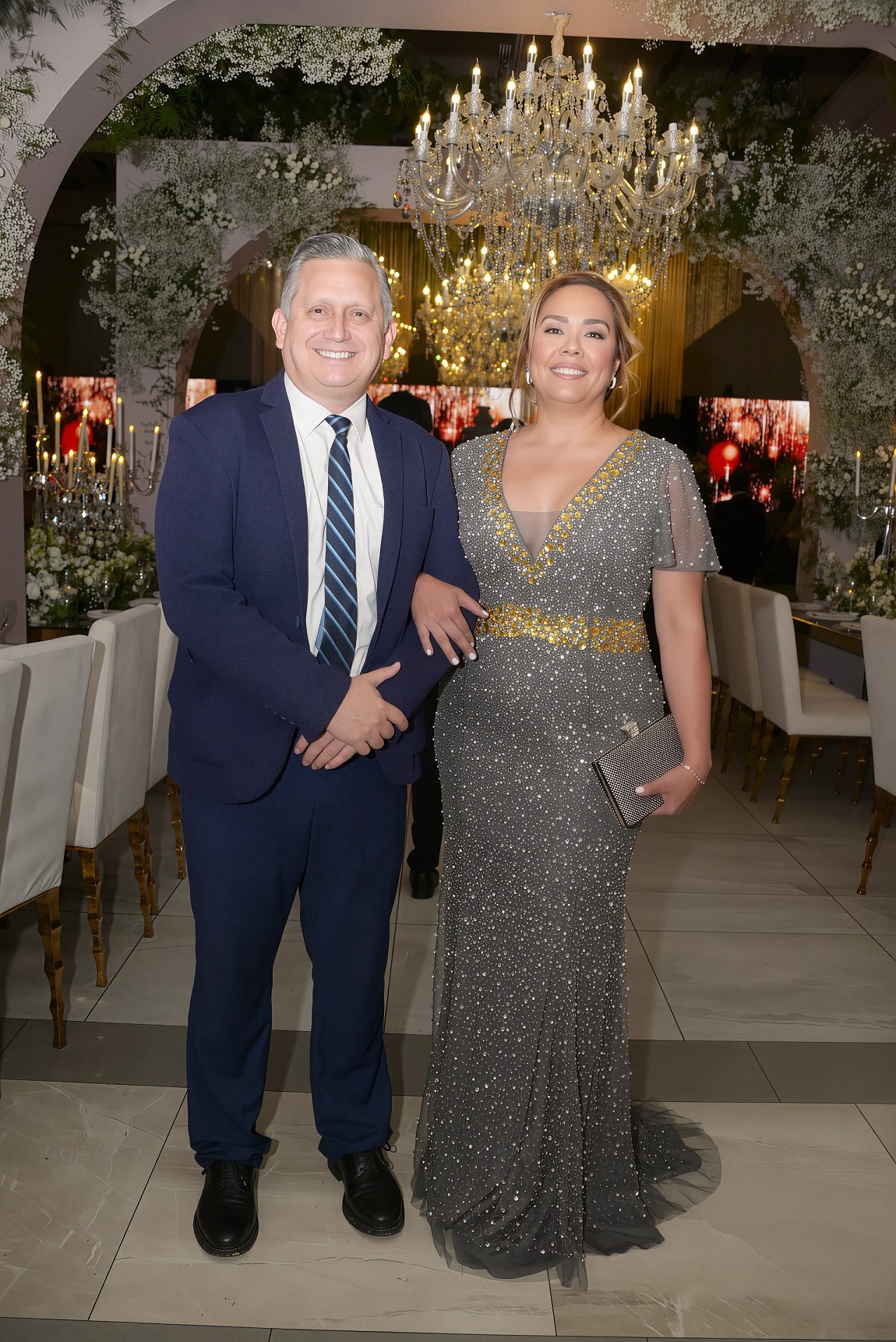 La velada se lució como una sofisticada fusión de estilos, donde resplandeció el refinado gusto de la pareja. El espacio, cargado de encanto, se ilumina con una luz tenue, destellos y el brillo de lámparas de cristal, todo enmarcado por la belleza de las flores. Una noche de ¡Absoluto amor! que deleitó los sentidos de los selectos invitados y, por supuesto, de los recién casados.