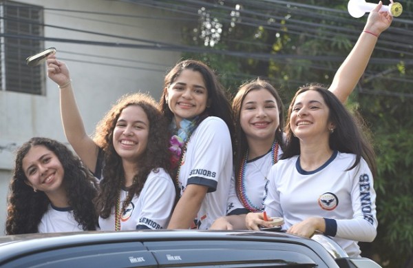 Con camisas alusivas y accesorios de carnaval los seniors realizaron el ameno recorrido de su regreso a clases