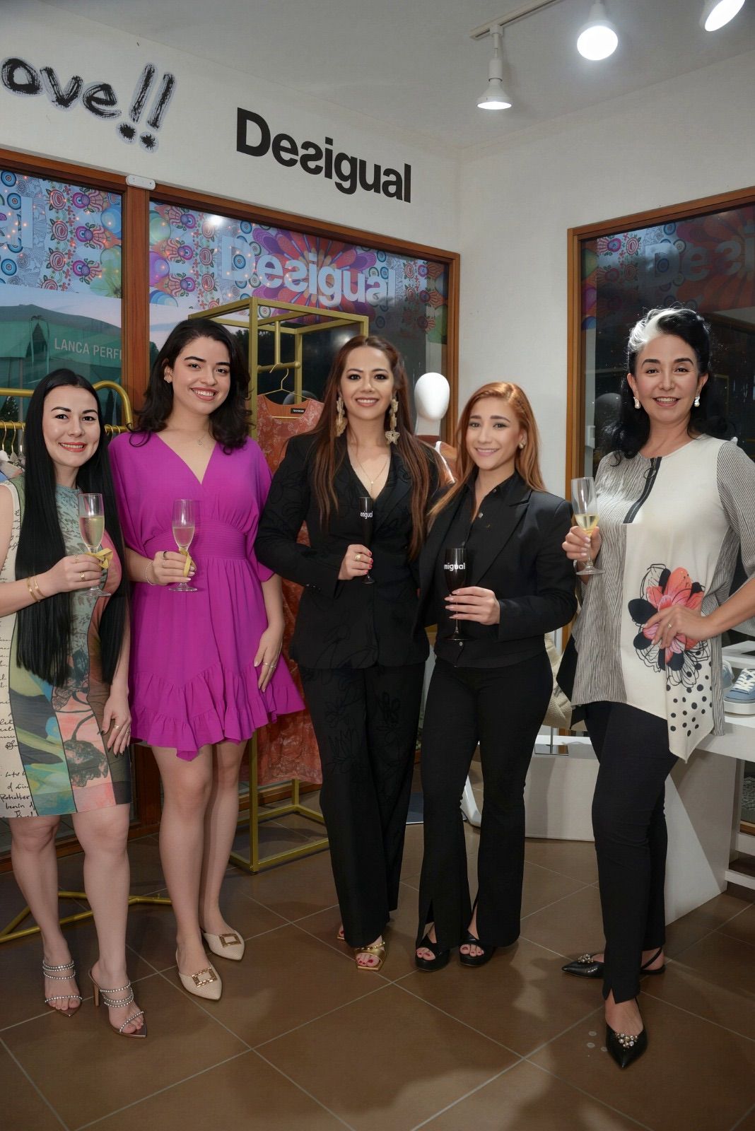 Cinthya Enamorado, Sophia Bedrossian, Janina Tábora, Charlotte Guzmán y Graciela Nieto, brindan por el éxito de la nueva colección Desigual.