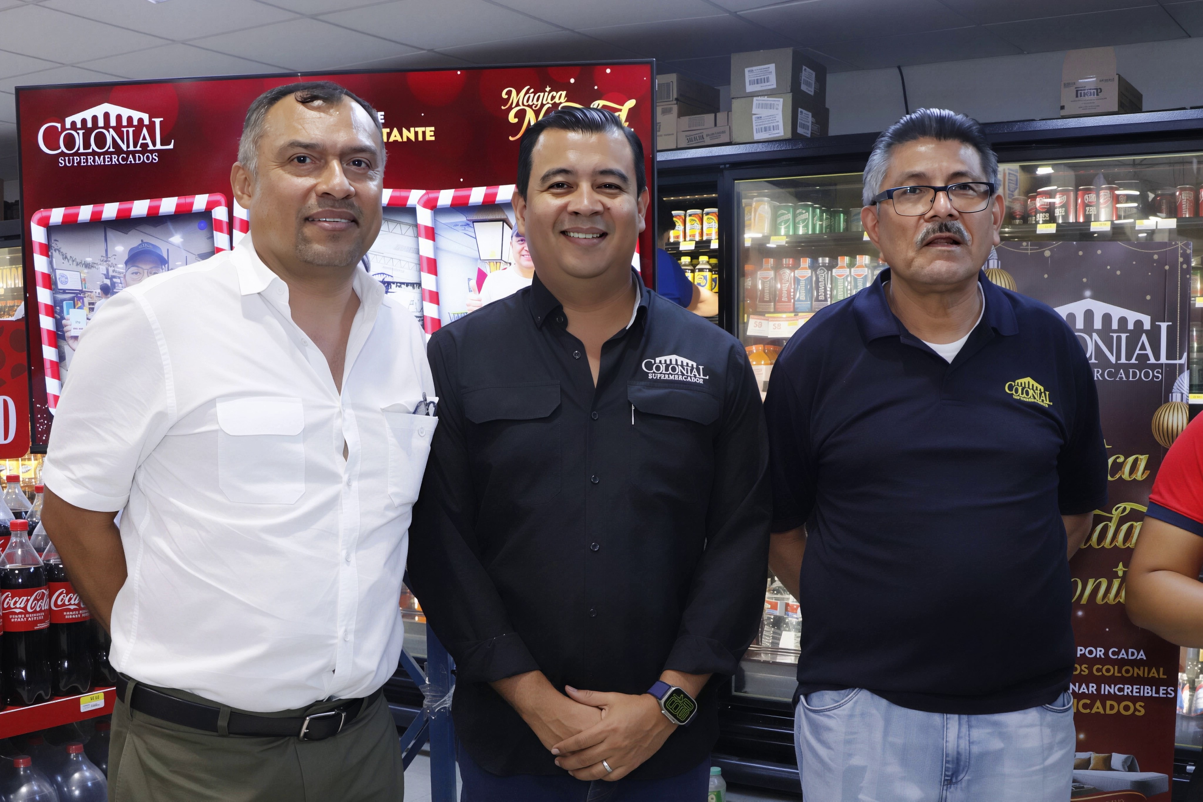 Francisco Pereira, Gerente de Mercadeo y Comunicaciones de Supermercados Colonial, junto a los ejecutivos Jorge Quintana y Héctor Gómez, destacaron que esta iniciativa es posible gracias al programa Puntos Colonial.