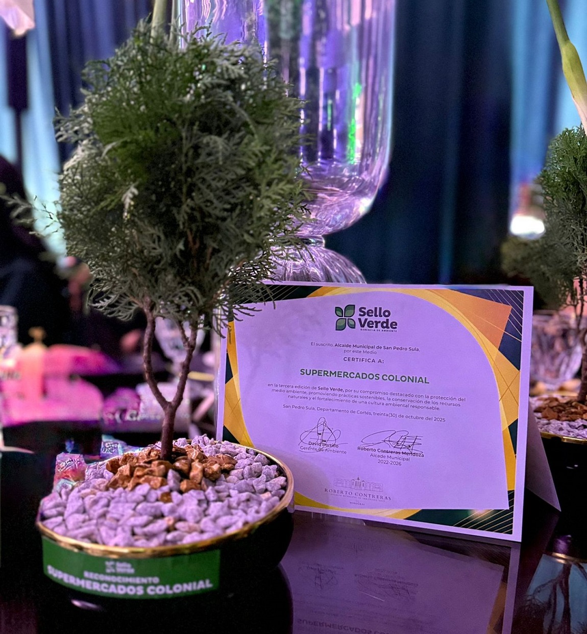 San Pedro Sula. – Por su destacado compromiso con el medio ambiente y la promoción de prácticas sostenibles, Supermercados Colonial fue galardonado con el Sello Verde 2025. Este reconocimiento, otorgado por la Municipalidad de San Pedro Sula en su tercera edición, valida el esfuerzo constante de la empresa.
