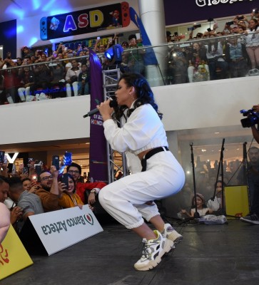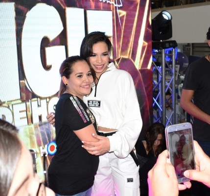 San Pedro Sula.- El brillo del flash de centenares de cámaras, videos y la rotunda ovación del público presente, parecían anunciar el ingreso de Angie Flores a la plataforma preparada para su esperada firma de autógrafos y toma de fotografías con sus fans…allí, la “Reina de Honduras” se apoderó del escenario que por unos minutos compartió con su antiguo compañero en La Academia, Jorge Alejandro, para luego interpretar “7 Rings” ¡de manera incomparable!