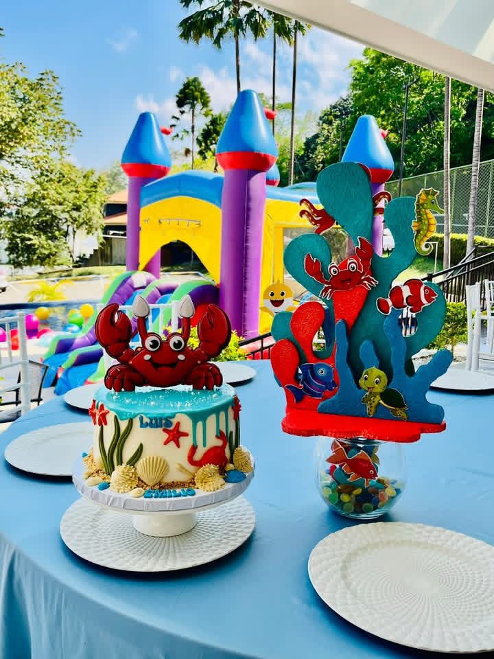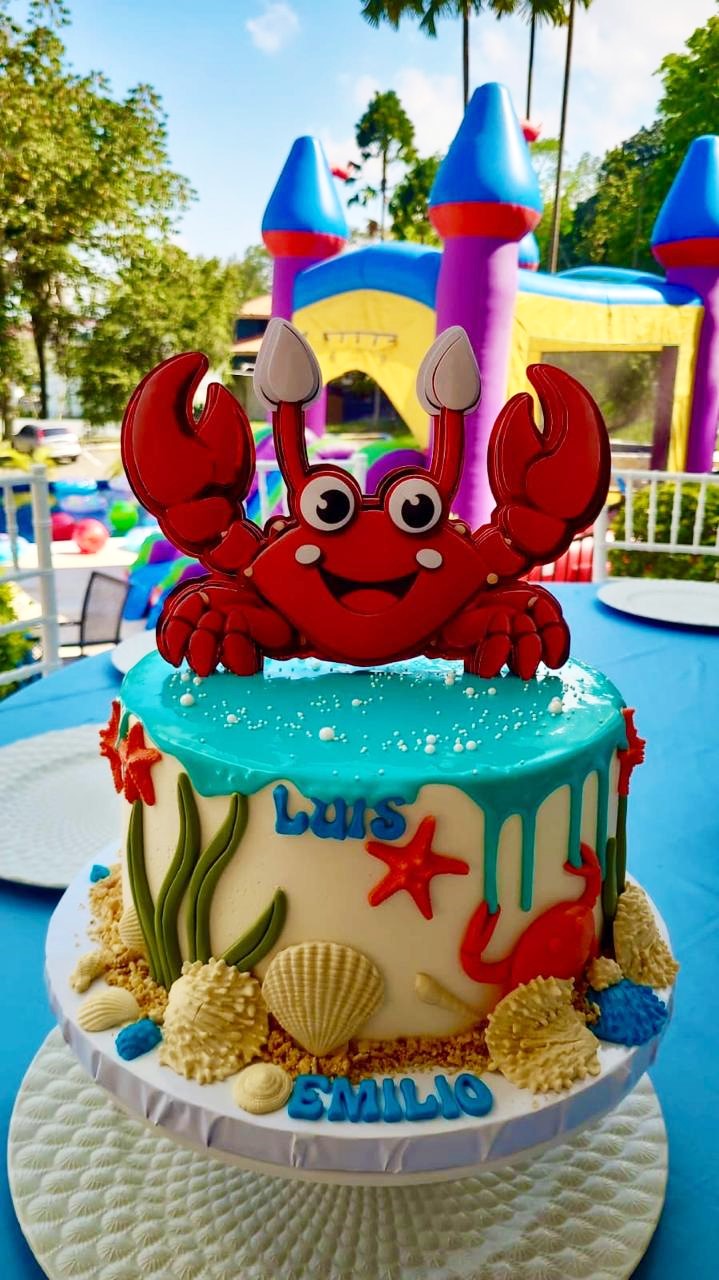 Detalles lúdicos y una paleta de colores vibrantes dieron vida al mundo de Nemo en el aniversario natal de Luis Emilio Morales.El exquisito montaje logró capturar la esencia de una aventura marina, creando el escenario perfecto para una tarde inolvidable.Dulce Arrecife: El espectacular pastel de cumpleaños, una verdadera obra de arte en repostería que capturó los vibrantes colores y la magia del mundo marino de Nemo.
