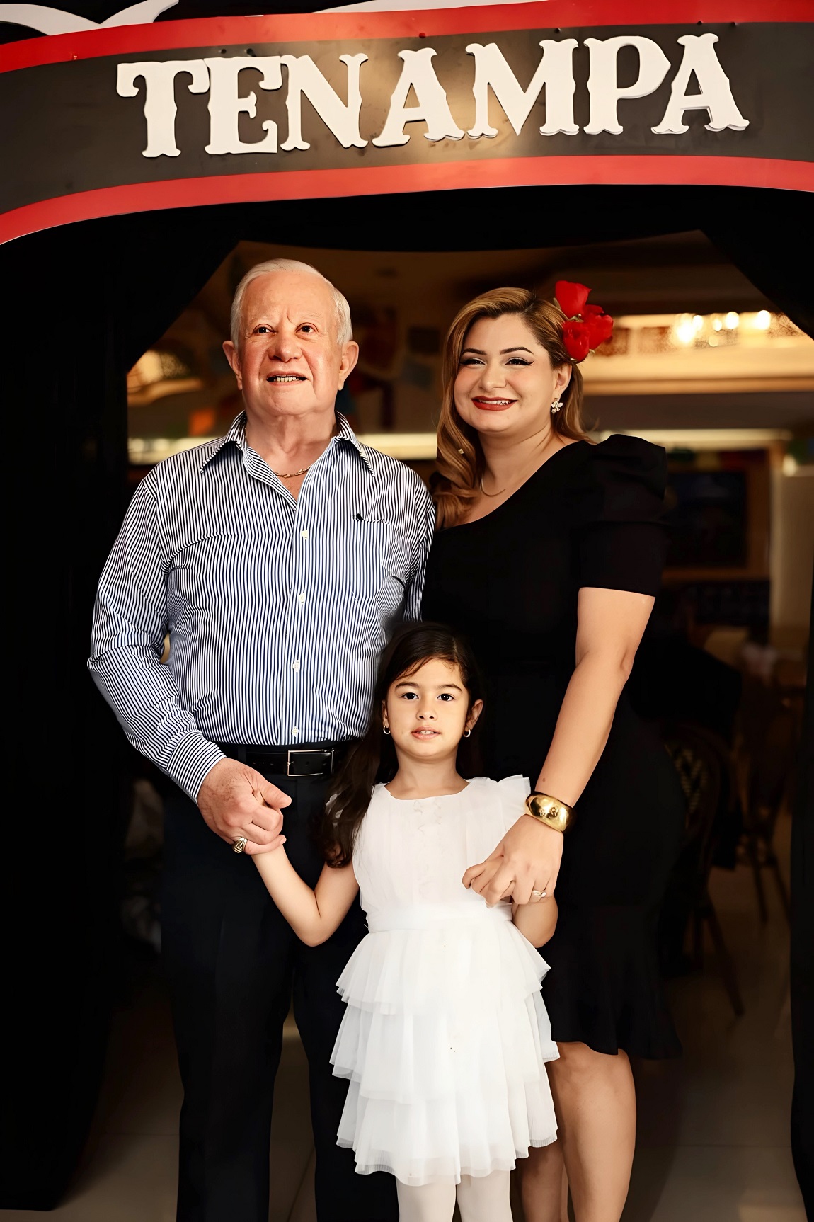 Don Roger D. Valladares, captado en un momento de plenitud durante la velada inspirada en la Época de Oro acompañada de su esposa Emma Mejía de Valladares y su pequeña hija Emma Valentina. / Fotos Cortesía.
