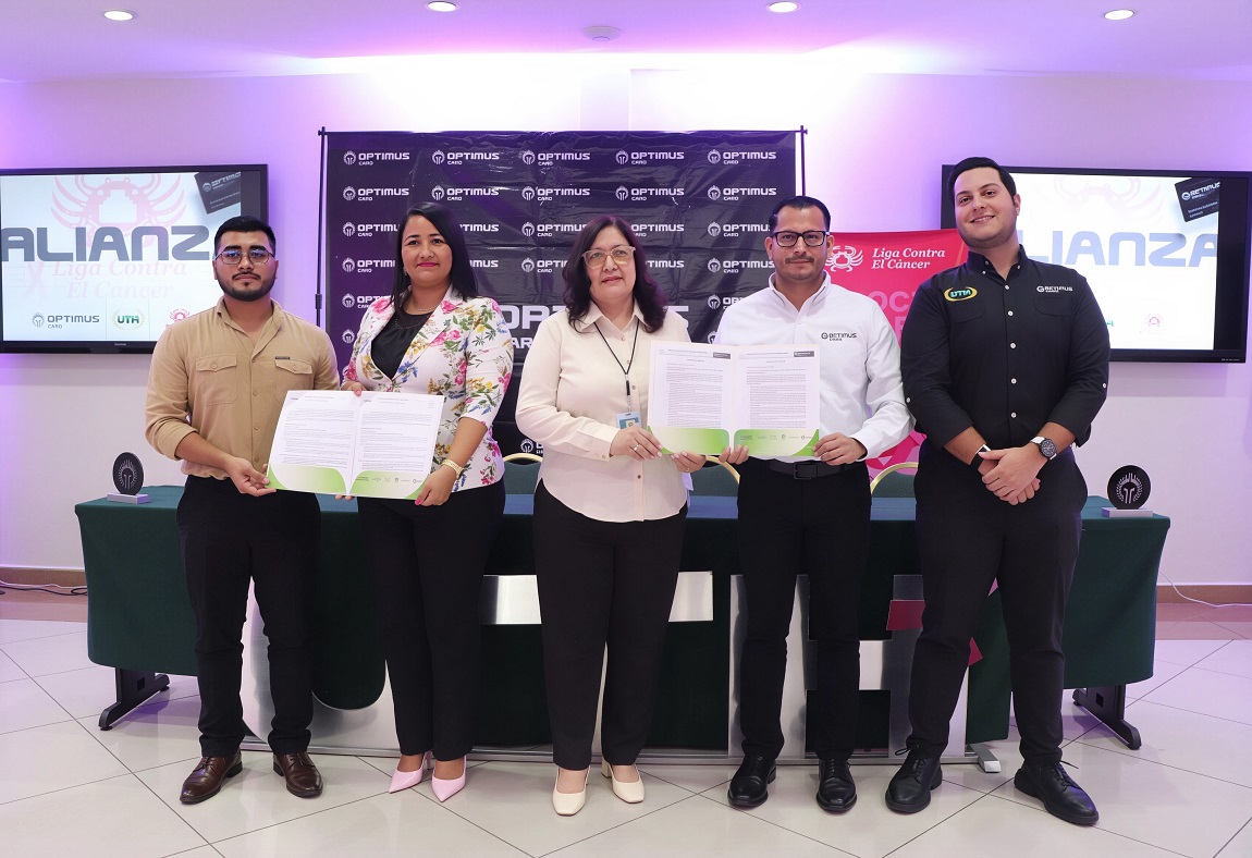 San Pedro Sula. – Conscientes de que la vida es un regalo que debe cuidarse y valorarse, la Universidad Tecnológica de Honduras (UTH), Optimus Card, la Liga Contra el Cáncer y ElevateHub firmaron este martes el convenio “Unidos por la Prevención”, una alianza que busca fortalecer la lucha contra el cáncer mediante la detección temprana y el acceso a servicios médicos a precios solidarios.