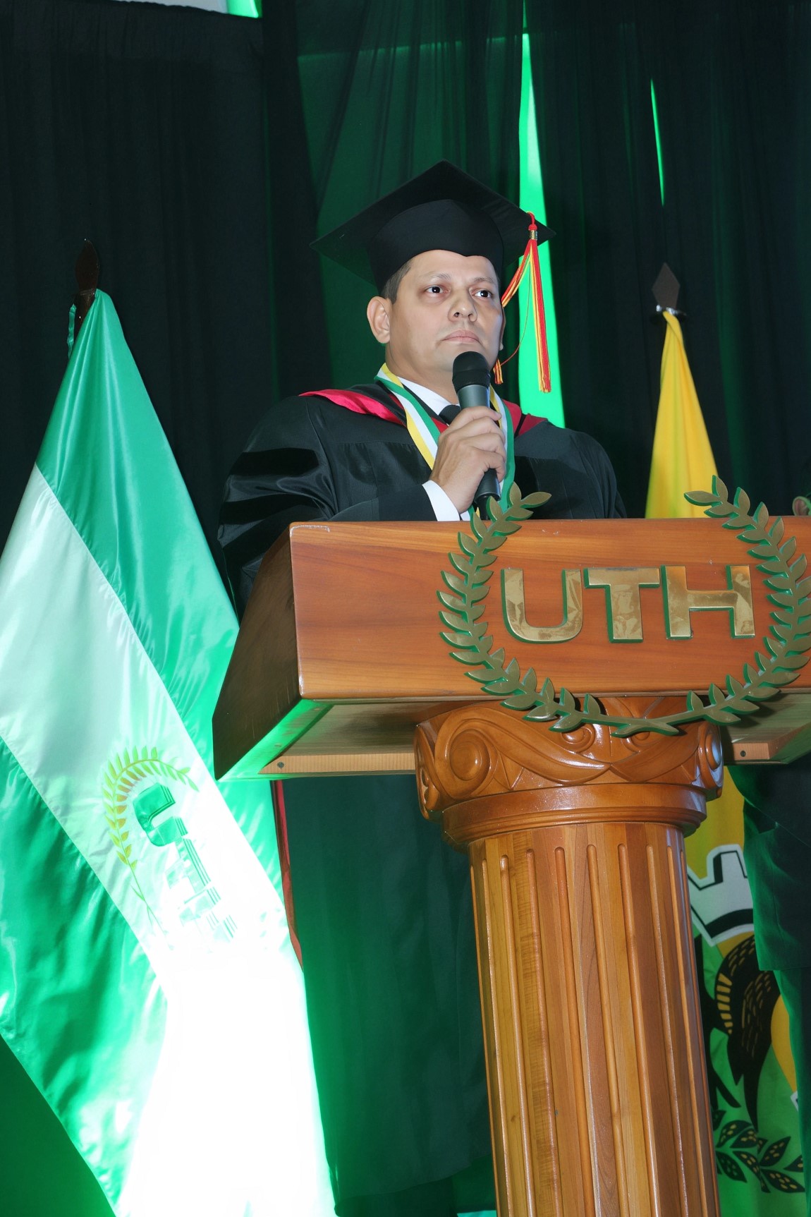 El Presidente de UTH, Don Roger D. Valladares, ofreció un mensaje llevó de inspiración y de simpatía en el acto de reconocimiento a la excelencia académica, recordando a los nuevos profesionales que los grandes sueños se alcanzan con disciplina, ética y pasión.