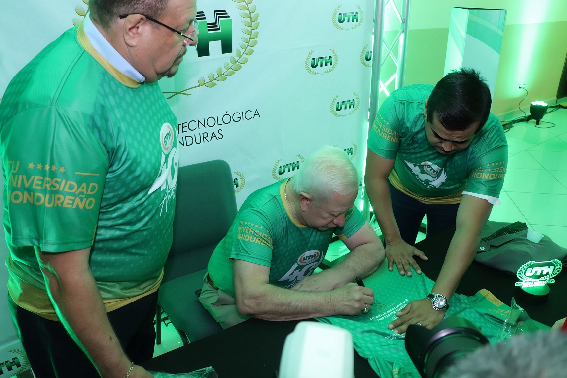 Como cierre simbólico del lanzamiento, Roger D. Valladares firmó personalmente la única edición de la camisa conmemorativa de los 40 años, convirtiéndola en una pieza histórica que encarna liderazgo, valores y compromiso permanente con la formación de los hondureños.
